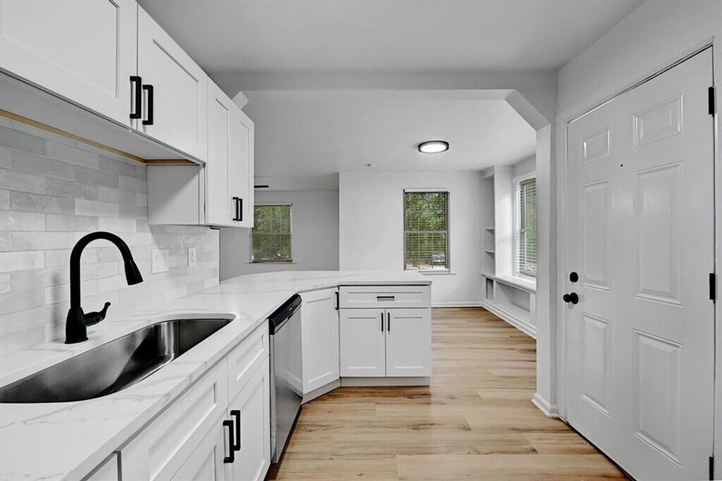 2305 Longview is an expansive property featuring a 6 bed / 4 bath home in the front and a 2 bed / 1 bath unit in the back, totaling 8 bedrooms and 5 bathrooms—perfect for large groups or students planning ahead for next semester near UT. Upon entry, you're welcomed by a spacious open kitchen and living area, where white walls and large windows create a bright, warm, and inviting atmosphere. The home offers ample storage throughout and a modern, sleek design that suits any décor style. The house enjoys access to a large fenced backyard ideal for pets or family gatherings, along with convenient off-street parking. Don’t miss out on this rare and versatile property!
