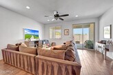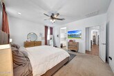 Welcome to this beautifully upgraded single-level home in the highly sought-after Mountain Trails gated community! This spacious rental offers a split floor plan with an open-concept kitchen and living area,perfect for comfortable everyday living and entertaining. Enjoy a fully landscaped backyard with a built-in fire pit,9-foot ceilings,granite countertops,a massive kitchen island,a walk-in pantry,and an abundance of natural light throughout. A dedicated flex space is ideal for a home office,gym,or playroomwithout taking up a bedroom. Relax under the covered patio or take advantage of the community amenities,including a community pool,2 houses down,and a playground. Conveniently located near golf courses,South Mountain hiking trails,and with easy access to freeways.