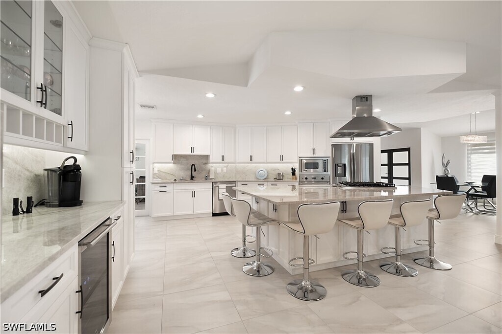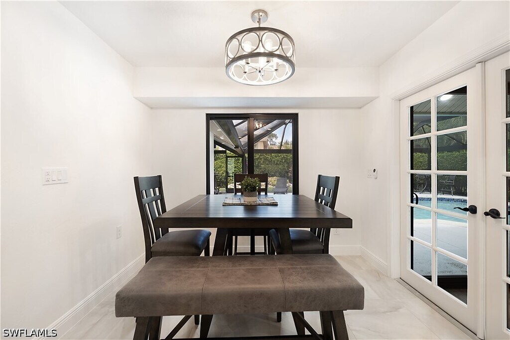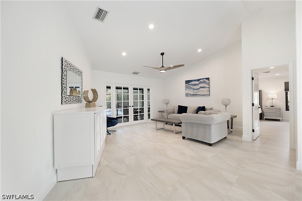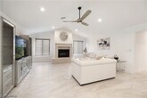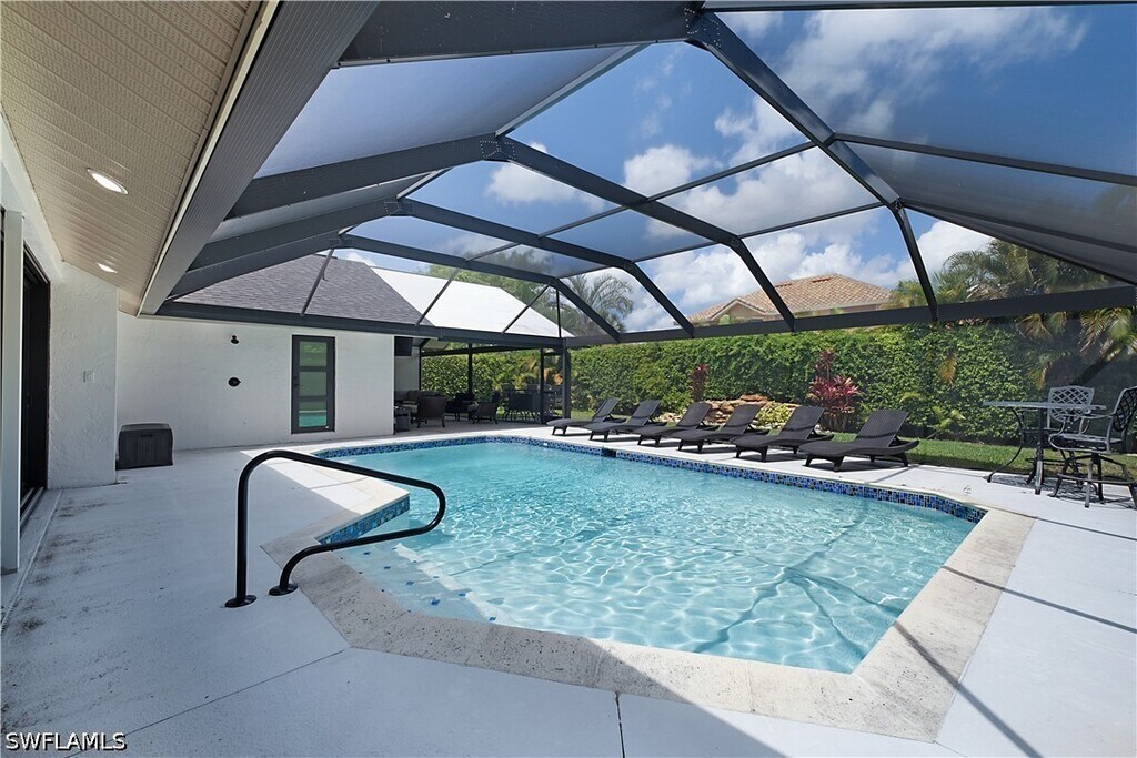 Stunning Kings Lake rental available now in one of Naples' most desirable communities. This completely remodeled 3-bedroom,2-bath home offers 3,000 sq ft under air and over 5,500 sq ft total,and is being offered turnkey furnished for an annual or long-term tenancy of 6 months or more. From the moment you walk in,the soaring cathedral ceiling and gleaming neutral porcelain floors set the tone for the quality throughout. The open concept kitchen is the heart of the home,showcasing high-end stainless steel appliances,a gas cooktop,white wood soft-close cabinetry,a breakfast nook,wine and coffee bar,and breathtaking Taj Mahal quartzite countertops. French doors lead to a fully air-conditioned Florida room overlooking the heated pool,creating the perfect indoor-outdoor flow for entertaining. A separate dining area sits just off the kitchen beside a second living space with double French doors and sweeping pool and garden views surrounded by lush privacy hedging. The main suite is exceptional,featuring a large walk-in closet with custom built-in shelving,double sinks,soaking tub,and an oversized walk-in shower. Both guest bedrooms are well sized with rich wood laminate flooring,and one includes a walk-in closet with custom shelving. The large laundry room includes cabinetry,quartz countertops,a utility sink,plus washer and dryer. Impact windows and doors provide peace of mind throughout. The expansive pool deck and covered lanai make outdoor living a daily pleasure. The rare 3-car garage with beautiful epoxy floors adds storage and flexibility,perfect for vehicles,a golf cart,or guest use. Kings Lake is a highly desirable,established community built around a scenic 30-acre lake with walking and biking trails,tennis and pickleball courts,and the Kings Lake Square shopping center just steps away featuring Publix,Starbucks,and multiple dining options. Just 3 miles to the world-class restaurants,boutique shops,and galleries of famous 5th Avenue South and only 3.5 miles to the white sand beaches and the Naples Pier on the Gulf of America.