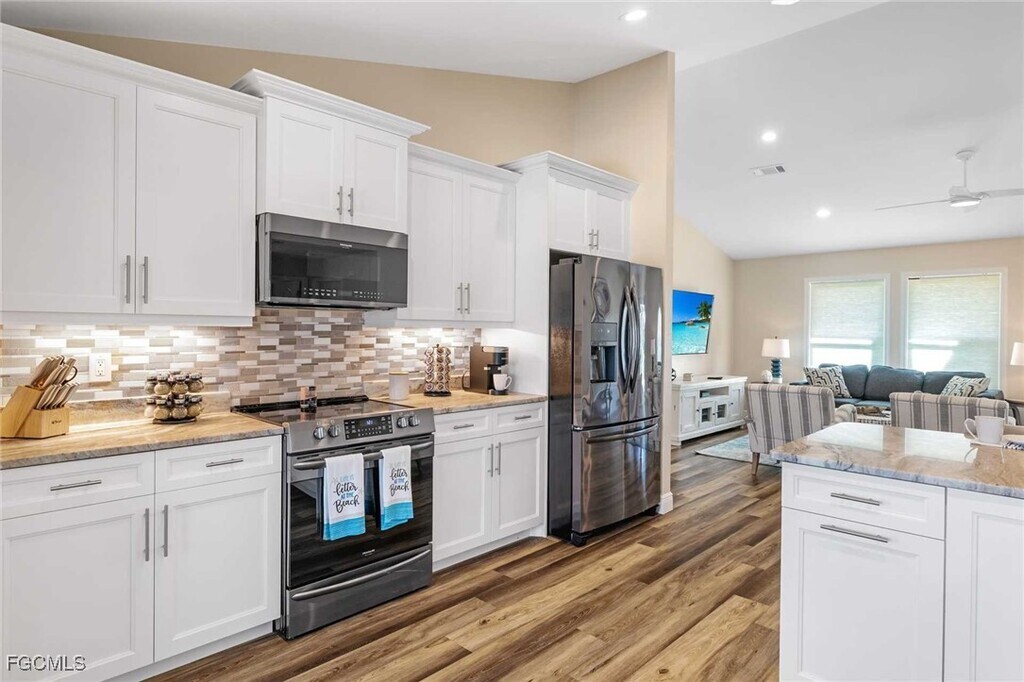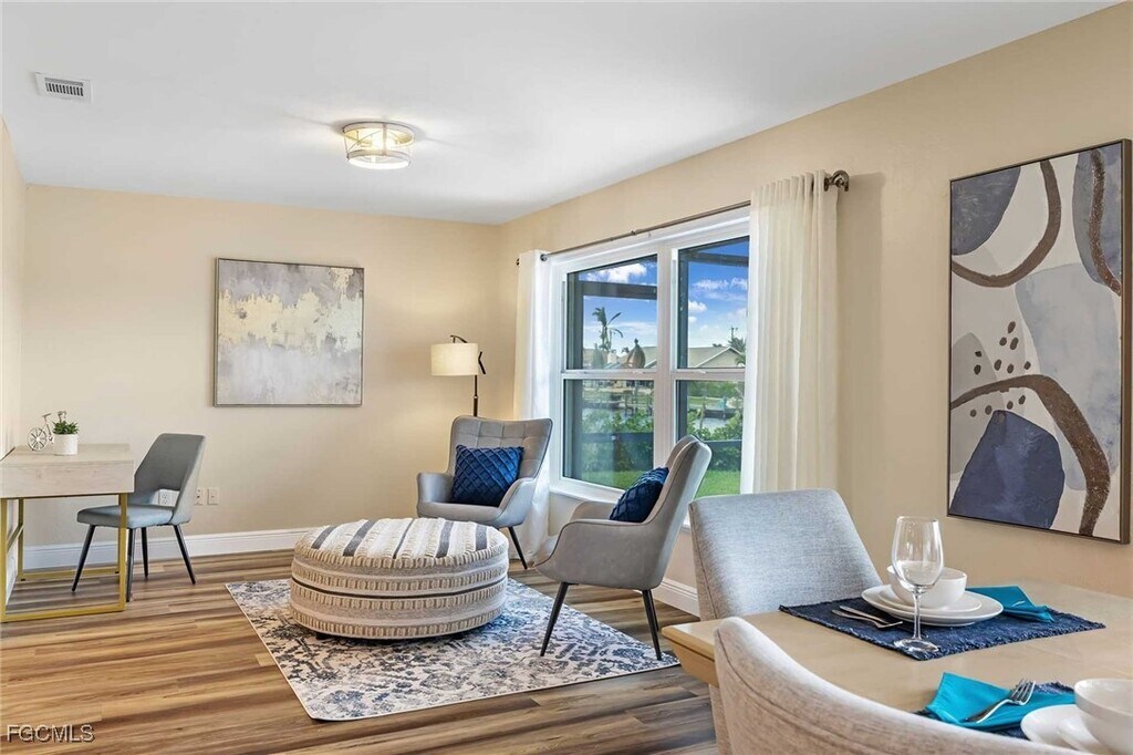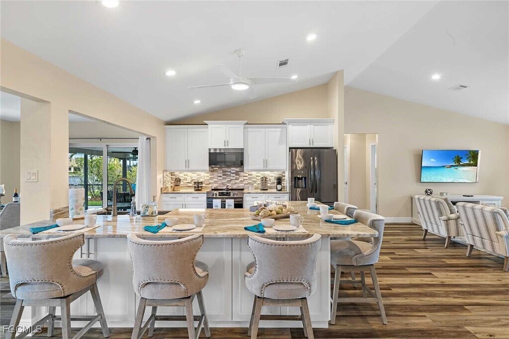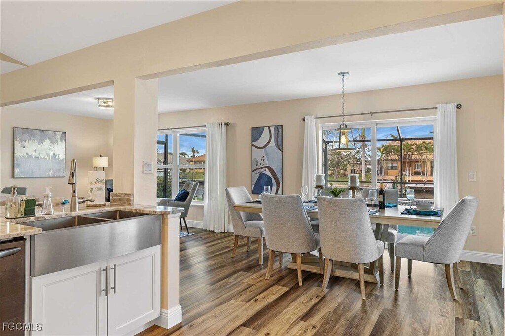 This is a VACATION RENTAL only. Owner will not consider an annual rental. Weekly rentals permitted. Spend your next family vacation at Villa Sunny! This 3 bedroom,2 bathroom pool home has an open concept layout and offers nearly 1,900 sq. ft. of space. Located in the coveted SW area of Cape Coral conveniently near a variety of shopping centers,restaurants,golf courses,airports,and beaches. Tarpon Point has many amenities and is also just a short drive away. This villa is ideal for guests who want beautiful Florida living and relaxation in a quiet neighborhood. Living Room: The living room offers a comfortable sofa and two chairs with a large flat-screen TV off of the front entry. The vaulted ceilings and large windows make sure you can enjoy all that bright Florida sunshine no matter where you are. There is a separate seating area off the kitchen as well,offering two chairs and a desk for those who need to get some work done while away. Kitchen/Dining Room: The kitchen has everything necessary to prepare delicious meals for your friends and loved ones. There is an integrated breakfast bar with additional seating for 5 - perfect for a quick snack. There is a coffee maker available as well as a separate bar area with a wine cooler nearby. The dining area is located off of the kitchen and has seating for 6 guests. Enjoy your meals with a beautiful view of the pool area through the nearby sliders. Master Suite: The spacious master bedroom suite features a king-size bed and flat-screen TV. The master bathroom is through the decorative barn door and offers a walk-in shower and dual-sink vanity. Guest Bedrooms & Bathrooms: The first guest bedroom features a queen size bed and flat-screen TV. The second guest bedroom offers a twin-over-twin bunk bed - perfect for kids! The guest bedrooms share the second bathroom with a single-sink vanity and tub/shower combination. Lanai/Pool/Dock: You will no doubt spend most of your time by the pool! The pool area is private and relaxing,making day or night outdoor lounging a bliss with beautiful water views. The spacious lanai offers an electric-heated pool with Northern exposure. You have plenty of seating available! There is poolside dining with room for 6 guests and sun loungers to sit by the pool. The propane grill is available for you to use during your stay. Head down to the dock and enjoy the wonderful wildlife of different waterfowl and birds that are always playing in the water. There are so many memories to be made in Southwest Florida at Villa Sunny! Book today to start enjoying your next great adventure.