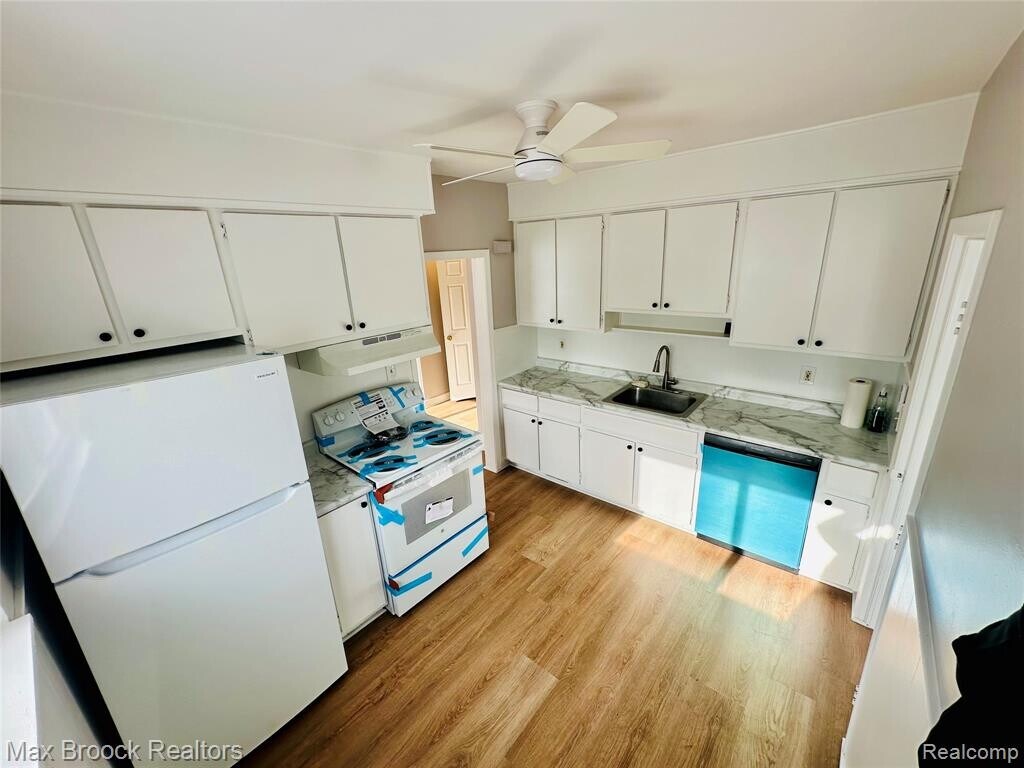 Fantastic ranch home in Hazel Park! Fresh paint throughout, brand new wood style flooring and all new appliances in the bright white kitchen! Large laundry room with washer & dryer on the main floor. Huge unfinished basement is perfect for storage or a recreation room/space! Three generously sized bedroom, 1 full bathroom and a somewhat open floor plan with living room and dining room flowing nicely to the kitchen. Full fenced backyard and conveniently located next to I-75 for quick commute downtown or north! Hurry and get in before the holidays...immediate occupancy!