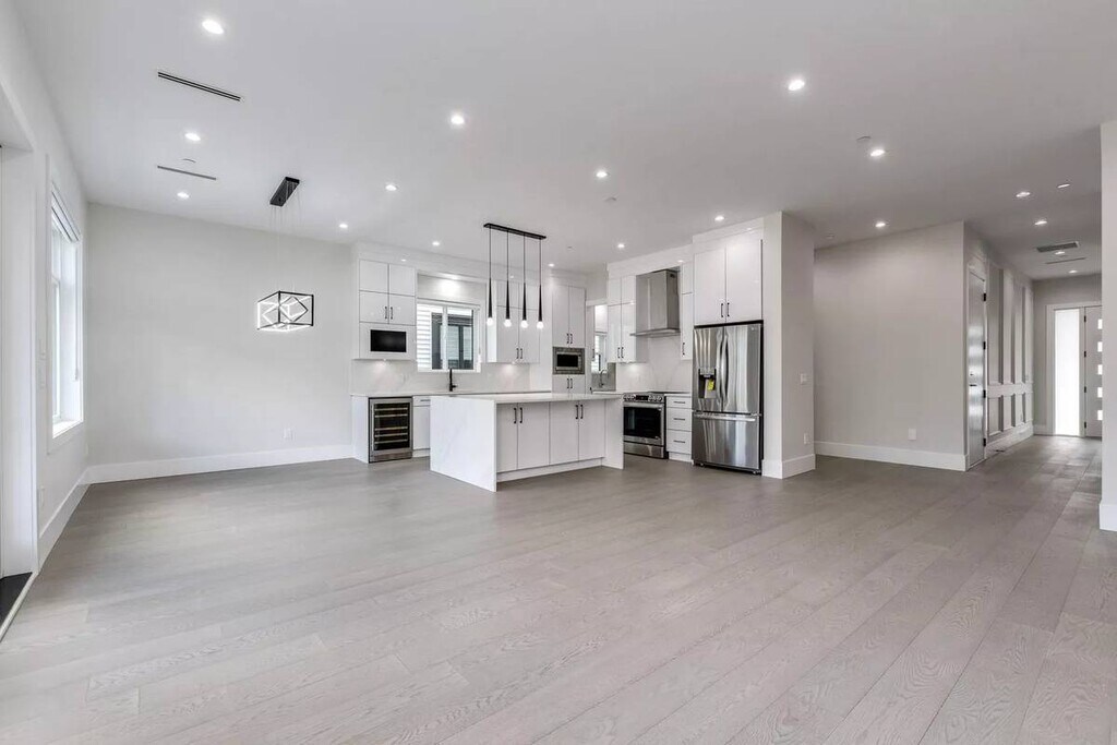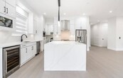 Bright, modern upper two-level home available January 15, offering approximately 2,600 sq. ft. of open, airy living space with 10 ft ceilings. This newer Silver Valley property features engineered hardwood flooring, radiant heating, hot water on demand, and air conditioning for year-round comfort. The main level includes a spacious kitchen with a waterfall island, stainless steel appliances, wine cooler, spice kitchen, and a cozy gas fireplace, while the upper floor offers four bedrooms including a primary ensuite with double sinks. Enjoy the convenience of an EV-charger-ready double garage, two driveway parking spots, central vacuum, security system, patio, private yard area for exclusive upper-level use, and plenty of storage. Appliances include a washer, dryer, dishwasher, refrigerator, cooktop, microwave, wine cooler, and window coverings. Tenant pays utilities, and pets are considered with a pet deposit.