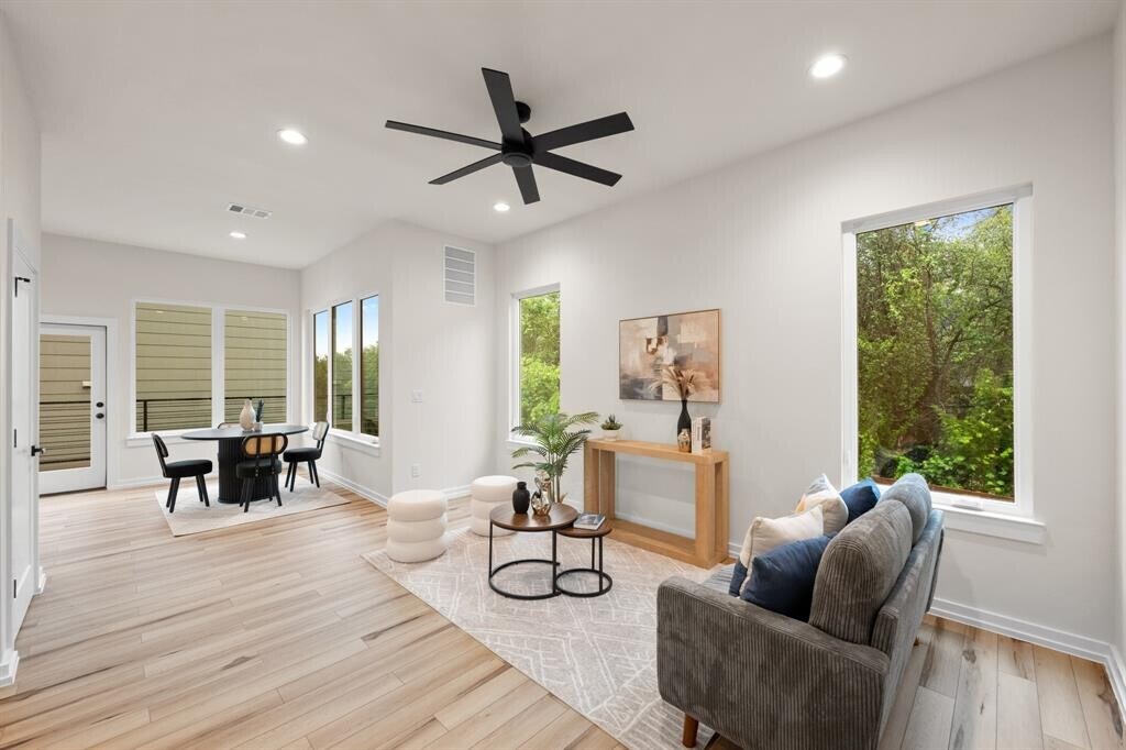 Discover modern living at its finest in this exceptional new construction townhome, one of nine at 2309 Montopolis Drive. Boasting quality craftsmanship and thoughtful design, this stunning residence offers three spacious bedrooms, each complete with its own full bathroom and walk-in closet, providing comfort and privacy. Entertaining is a breeze with a seamless flow from the indoors to the outdoors. A large, private terrace with direct access to the dining area and kitchen including large windows allowing great natural lighting and the perfect setting for al fresco dining and gatherings. The townhome includes both a convenient garage and a carport for parking. The main bedroom is a true retreat, featuring a private balcony where you can soak in breathtaking views of the Downtown Austin skyline. Located in a vibrant Austin neighborhood, 2309 Montopolis Drive offers easy access to the city's best dining, entertainment, and cultural attractions just 12 minutes from downtown and 9 min from the airport. Don't miss this opportunity to live in a brand-new, impeccably designed townhome with exceptional features and stunning views. MLS ID 7842657