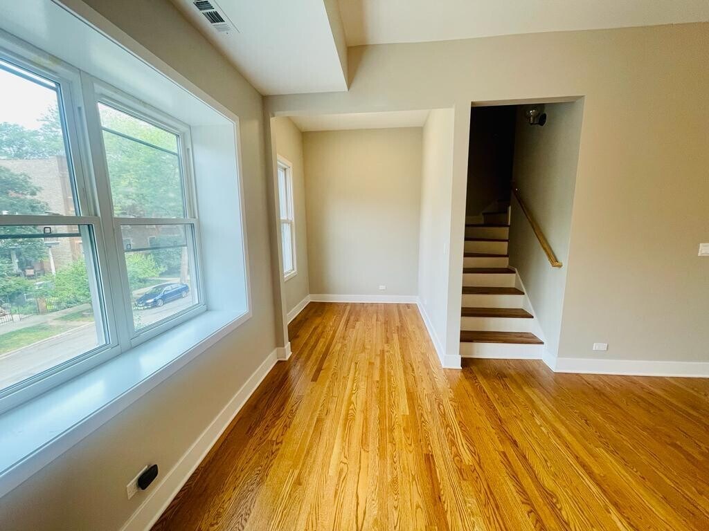 Welcome to this impressive,rehabbed duplex-up unit which is ideally situated on a tree-lined street in Logan Square. Top-Floor,gorgeous unit offers a private entry to unit with a sizable coat closet at the top of the landing,leading into the spacious,sun-kissed living room boasting terrific windows,gorgeous hardwood flooring throughout,recessed lighting,neutral grey paint and open concept living combined with a den that is a great space to work from home,as well as separate dining area and the new,modern kitchen. HGTV kitchen features white,shaker style cabinetry,quartz countertops,subway tile backsplash and brand new Whirlpool Stainless Appliances,great cabinet and counter space,and opens onto the rear deck,great to enjoy the summer and fall months. Spacious unit boasts 3 good-size bedrooms,2 bedrooms are on the main floor with access to gorgeous,fully remodeled bathroom; equipped with modern finishes including porcelain tiling,tub/shower combo and vanity for storage. Primary suite is located on the top floor of the unit,abound with natural light,great closet space and private en-suite bathroom which features a stand-up shower,dual-vanity and beautiful,modern finishes. Side by side washer/dryer in unit; gas,forced heat and central AC. Wiring for video doorbell installed and ready for use. Parking is available for additional $150/month. Great location with access to area parks,terrific restaurants,movie theater,Target,expressway and more! MLS# MRD12626918 Based on information submitted to the MLS GRID as of [see last changed date above]. All data is obtained from various sources and may not have been verified by broker or MLS GRID. Supplied Open House Information is subject to change without notice. All information should be independently reviewed and verified for accuracy. Properties may or may not be listed by the office/agent presenting the information. Some IDX listings have been excluded from this website. Prices displayed on all Sold listings are the Last Known Listing Price and may not be the actual selling price.