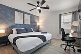Feel at home in this fully furnished, single-story apartment featuring 1-bedroom and 1 full bath. This apartment is equipped with central AC and heating, a full kitchen, a dining set, 2 smart TVs, high-speed Wi-Fi, blackout curtains, and a washer and dryer. The kitchen includes a full-size fridge, 4-burner stove, microwave, oven, dishwasher, air fryer, blender, seasoning, cookware, coffee maker, ground coffee, coffee mugs, drinking glasses, and wine glasses. This apartment is pet-friendly with a pet fee of $150 per pet. Free parking is available. This apartment is conveniently located near various attractions, hospitals, and universities. Downtown Phoenix is 6.5 miles away, Chase Field is 5 miles away, and Phoenix Rising FC Stadium is 8.1 miles away. You'll also find yourself within a short distance of Select Specialty Hospital - Phoenix (4 miles), Saint Joseph's Hospital (3.9 miles), Grand Canyon University (1.3 miles), and Phoenix Airport (10.4 miles). Self check-in is available via smart lock or lockbox. Includes a desk and chair. [SI]