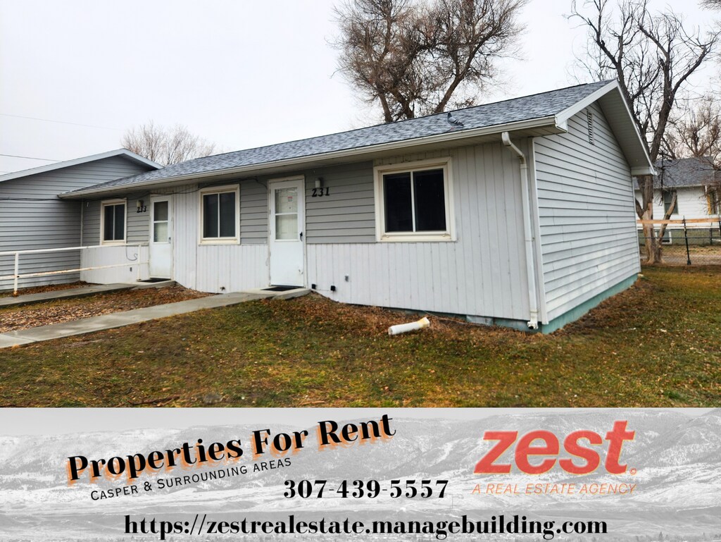 FOR RENT! 231 E. K St., Casper Studio Apartment 1 bathroom $750 a month $750 deposit Call/Text CJ for info or to schedule a showing CJ 307/259-5958 CJ Lovato ~ Zest Real Estate *Handicap Accessible features *Laundry Hook ups Available *Tenants are responsible for utilities, but a $35 monthly discount is given for water, and $40 monthly discount for gas. Application Fee $50: 4-plex