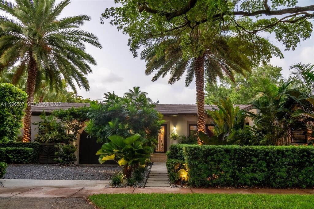 Fully furnished and beautifully renovated, this 3-bedroom, 3-bath Coral Gables home is tucked on a quiet street just minutes from downtown and Merrick Park. Offering 2,948 living sqft and 3,680 total sqft on a 9,000 sqft lot, the residence blends warmth and effortless indoor-outdoor living. Bright interiors feature engineered wood floors, wood-paneled ceilings, plantation shutters, and impact windows and doors throughout. The open-concept custom kitchen is anchored by a large island and flows into the family room with a built-in media center. Premium appliances include a Fisher & Paykel refrigerator, double wall ovens, microwave, and a 5-burner gas range with hood. The primary suite is a private retreat with a sitting area and custom illuminated walk-in closet featuring a center island and makeup vanity. The spa-like bath offers dual vanities with LED mirror, a freestanding soaking tub, frameless glass shower, and a separate washroom with smart toilet. Outdoors, enjoy award-winning landscaping, recognized by the 2022 Coral Gables Landscape Beautification Award. The backyard is designed for entertaining and relaxation, featuring a custom pool with slate deck, raised mosaic waterfall wall, sculptural fountain, manicured privacy hedge, and an automatic pergola shading a lounge area furnished with West Elm outdoor pieces. Additional features include a 1 car garage, gravel driveway, whole-house generator, Nest thermostats, two A/C units, keypad entry, and timed exterior lighting. MLS # A11996537