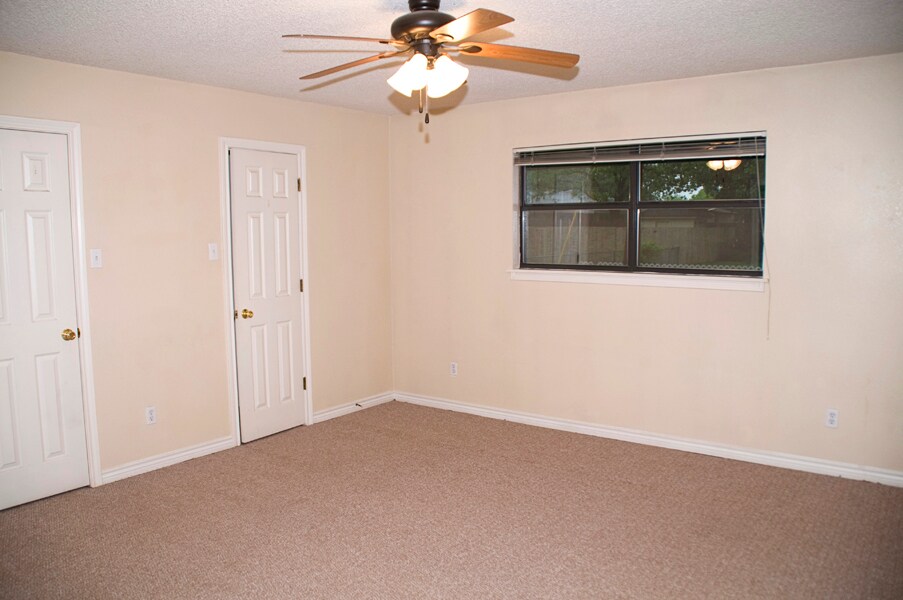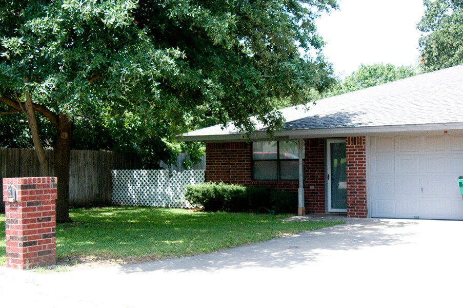 Duplex in highly desirable neighborhood - two bedroom, two full baths, one car garage with remote opening; tile and carpet floors; really nice shaded front and back yards; dishwasher and stove furnished; central heat and air; laundry connections.