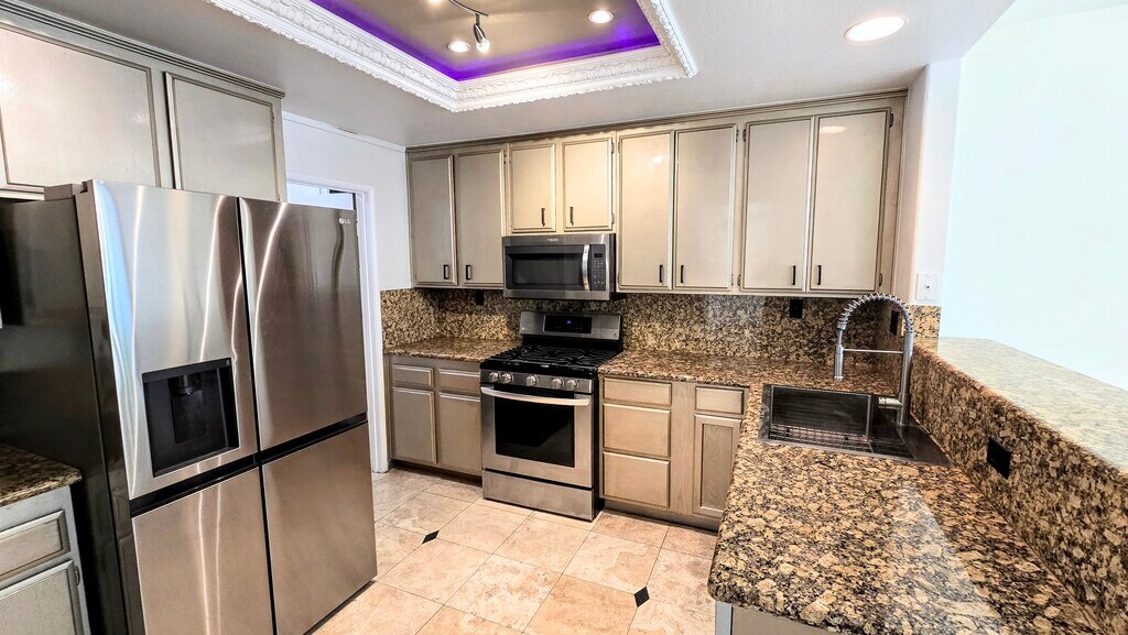 Welcome to the charming and pedestrian-friendly Bear Brand Breakers Community! This spacious 1,568 square foot, 3-bedroom townhome offers an oversized 2-car garage with direct access and the convenience of having no neighbors below or above. The abundance of natural light floods in through the newly installed windows, complemented by elegant plantation shutters on the first floor. You'll find Travertine tiles gracing the first floor and stairway, lending a touch of sophistication. The kitchen boasts granite countertops, and it's equipped with brand-new stainless steel appliances, including a refrigerator, dishwasher, gas stove, and microwave. Upstairs, the bedrooms feature laminate flooring, each with its own balcony and private bathroom. Ample closet space is a plus, with a spacious walk-in closet in the master bedroom. For added convenience, there's direct access to a gate leading to the Ocean Ranch Village shopping center. Here, you'll find a variety of amenities within walking distance, including Trader Joe's, Ralph's, CVS, Cinepolis Luxury Cinemas, 24 Hour Fitness, as well as an array of restaurants and shops. Residents also have access to the community's refreshing pool and relaxing spa. Plus, you'll be situated in an excellent school district and close to a park, the beach, and Dana Point Harbor. Small dogs and cats are welcome with a pet deposit, making this an even more pet-friendly and inviting place to call home. Don't miss out on the opportunity to enjoy living in this picturesque community!