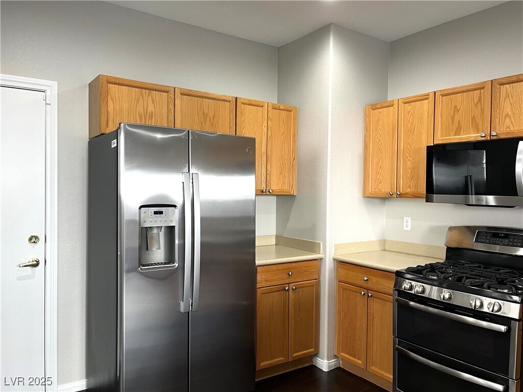Advertised rent includes all monthly fixed charges. Partially remodeled 1623 sq ft, 3 bed, 2.5 bath, 2 car garage in guard gated Inspirada. Open floor plan w/new carpet & new grey two tone paint. Kit w/breakfast bar w/corian counters, oak cabinets, wood laminate floors, recessed lighting, new SS appliances, pantry & dining nook. Dining w/wood laminate flooring & recessed lighting open to living & kitchen. Liv room w/wood laminate flooring, ceiling fan & light & entertainment niche. Primary bed w/carpet, ceiling fan & light & walk in closet. Primary bath w/dual sinks, oak cabinets, cultured marble counters & walk in shower w/add'l linen cabinet. Bed 2 & 3 w/ceiling light, carpet & walk in closets that share a Jack & Jill bathroom w/double sinks, cultured marble counters, oak cabinets & shower/tub combo. Laundry rm w/shelf. Loft w/small niche & add'l linen closet. Guest bath down w/pedestal sink. Backyard w/desert landscaping & pavers.$2200 base rent + $35 trash = $2235 periodic rent