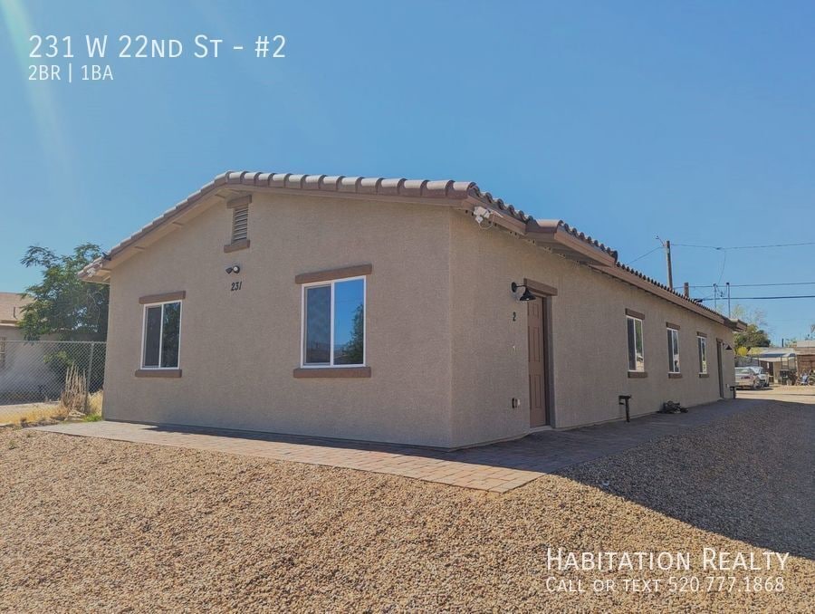 *****We only accept applications at ***** *****50% off 1st month's rent!!***** Welcome to the recently built, 2 bedroom, 1 bathroom home at Santa Rita, conveniently located near Downtown Tucson! This charming unit features beautiful granite counters, as well as off-street parking and central air conditioning. Explore the nearby Santa Rita Park Area, Downtown Tucson, A-Mountain Area, and Tumamoc Hill Area, all just a short drive away. Don't miss out on this fantastic opportunity to live in a prime location with easy access to I-10 & I-19 for easy commuting as well as shopping around the corner! 2Bed/1Bath 750 Square Feet Refrigerator Microwave Oven/Stove Washer/Dryer Hookups Santa Rita Park Area Off-street parking Central Air Conditioning West Tucson I-10 & I-19 Freeway Area Ceiling fans Downtown Tucson A-Mountain Area Tumamoc Hill Area $1495 due at lease signing. This includes a $995 refundable security deposit, $250 non-refundable cleaning fee, and $250 non-refundable leasing fee. First month's rent due one business day prior to move-in. Tenants to arrange and pay for all utilities. We do charge a $55 per person application fee, and all tenants will be screened for credit, past evictions, and criminal history. Well-behaved and loved pets are welcome, with an additional $200 fee per pet. A Mountain Area I 10 Freeway Area I 19 Freeway Area Oven/Stove Santa Rita Park Area Tumamoc Hill Area Washer/Dryer West Tucson