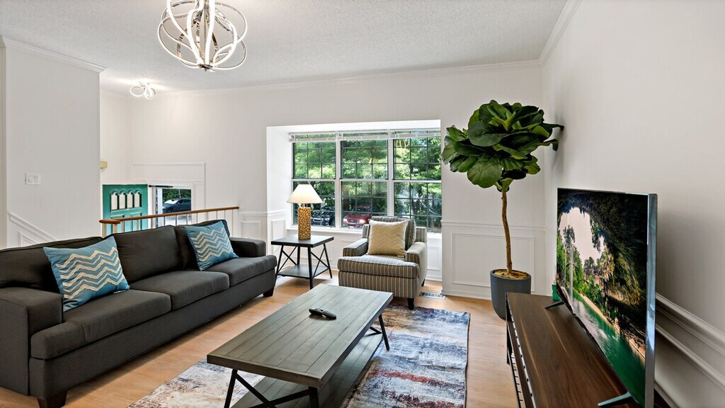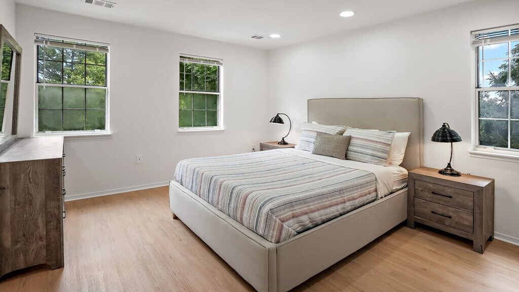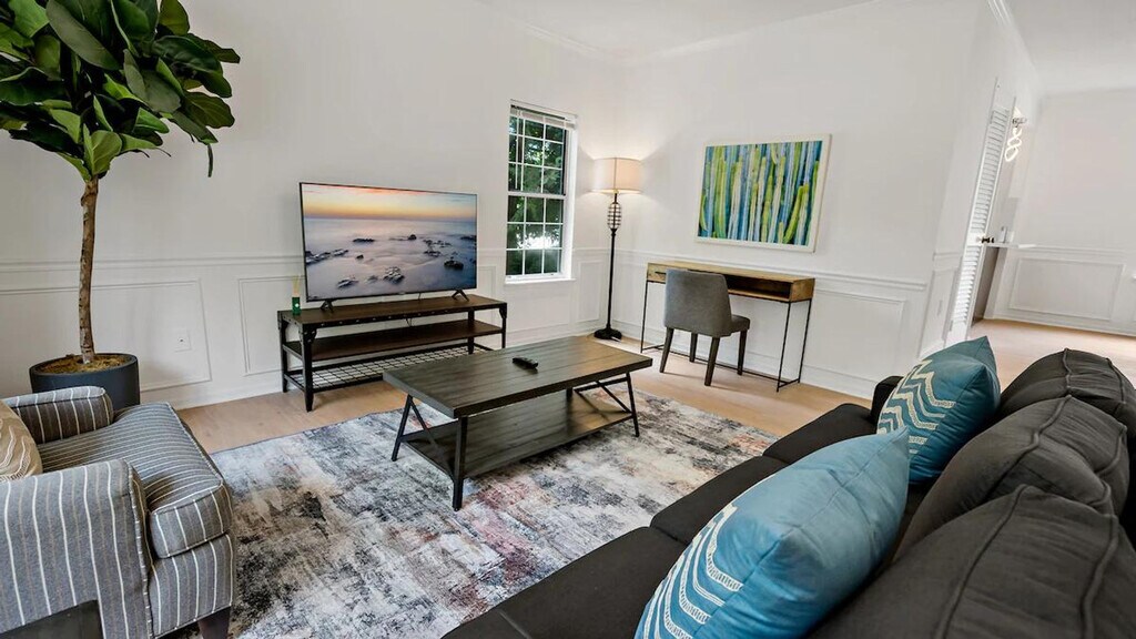 Feel at home in this peaceful and centrally located townhouse. This welcoming, comfortable, and clean 3-bedroom apartment is filled with natural light. The living room features a smart TV and cozy seating, perfect for movie nights. The fully equipped kitchen and dining space has everything you need to prepare delicious gourmet meals for you and your guests, with dining space for four. The three bedrooms feature cozy queen beds, fresh linens, and plenty of storage space for your belongings. Includes a dedicated workspace and an in-unit washer and dryer. Free parking is available on the premises. Pets are welcome with a fee of $25 per pet per day or $350 per month. Minutes from Reston Town Center, Community Center, and Lake Ann, this apartment is across the street from Safeway, a pharmacy, and food options. A valid copy of an ID or passport is required for all guests and visitors. Failure to provide a valid government-issued ID may result in cancellation. The basement is rented separately as a completely separate unit with a separate entrance, and no one has access to the other's space. [SI]