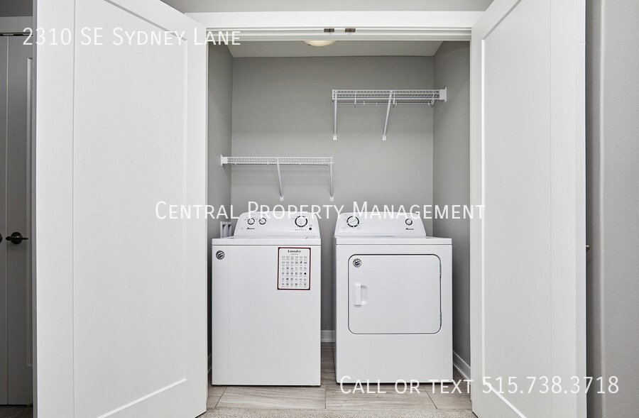Ask about our current move in Special! Beautiful end unit townhome located in Kettletsone Heights townhome development in Waukee. This location provides for easy interstate access and is situated along the Grand Prairie Parkway corridor which includes new retail, restaurant, and entertainment developments including the Vibrant City Music Hall. The main level floor plan consists of garage entry, front covered porch, kitchen with elongated counter-top for dining, dining area, family room, a utility closet and a storage closet, and a 12 bath. The second level floor plan consists a huge master bedroom suite with awesome walk-in closet and private bathroom, two additional bedrooms, a second full bath, a laundry closet (witch washer & dryer), and a linen/storage closet. Completing the 2nd level is an oversized linen closet & laundry area including washer & dryer. Appliances include washer, dryer, refrigerator with water/ice dispenser, dishwasher, microwave, and oven/stove. Finishes include stainless steel appliances, tile backsplash, quartz counters, LVP or tile flooring, and high-end custom cabinets (dovetail construction, full extension, soft close doors & drawers, with hardware). Landlord pays HOA dues which provide snow removal and lawn care service. Tenant is responsible for all utilities including gas, electric, water, and internet. *Photos above may not be of exact townhome but floor plan is the same and finishes are similar
