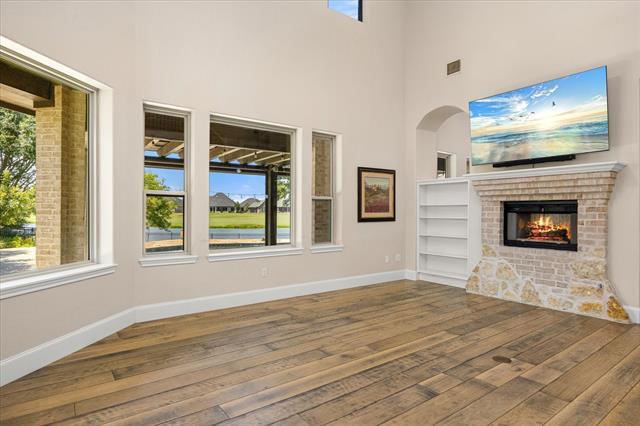 Backyard dreams, elegant upgrades, and the perfect balance of privacy and nature—all in the heart of Harbor Lakes! This spacious 4-bedroom, 3.5-bath beauty offers a versatile layout with an office tucked quietly in front and a massive upstairs bonus room (with closet!) ready to flex as a 5th bedroom, media room, or game room. You'll love the dual living areas downstairs featuring a double-sided fireplace and custom built-ins, all bathed in soft natural light from oversized shaded windows overlooking your own private backyard oasis. Inside, enjoy a chef’s kitchen with granite counters, gas range, veggie sink, wood accents, and a generous island. Entertain effortlessly with a dry bar, engineered wood floors, 2in blinds, custom lighting, and a large covered patio equipped with electric roller shades. The resort-style pool with sun deck and spa steals the show, but the real magic is the view—mature trees, lush hedges for privacy, and a serene pond frequented by turtles, fish, ducks, and egrets, with the golf course in the distance. It’s one of the largest backyards in Harbor Lakes, and with no close neighbors behind (500 feet away!), it feels a like your own private mini nature preserve. Other highlights: - Spa-like primary bath with jetted tub, dual vanities & massive dual-sided closet - Epoxy-coated garage floors - Dual AC units for comfort & efficiency - Side-entry garage, cable hard-wired. With a boat ramp, golf course, and club house nearby, this home is equal parts luxury and livability. Roof and one AC replaced in 2021. Owner is a licensed Texas real estate agent.