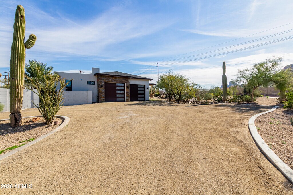 Available FOR RENT! Exceptional home with desert serenity & breathtaking mountain views! Natural desert landscaping,circular driveway,a 2-car side-entry garage,& charming front porch. The interior showcases an inviting living/dining room,abundant natural light,multi-sliding doors for indoor-outdoor connection,thoughtfully placed designer accent walls,a spacious family room with a fireplace,an elegant powder room,& a fire sprinkler system. Stunning modern kitchen featuring a large center island w/breakfast bar,SS appliances,pot filler,dark counters & coordinating backsplash,plethora of cabinets,vaulted ceilings,& walk-in pantry. The main bedroom has direct outdoor access & a lavish ensuite w/makeup vanity,walk-in closet,dual sinks,& an enclosed soaking tub & tiled walk-in shower w/dual shower heads. Entertainer's dream backyard offers covered patio,fire pit,synthetic grass,storage shed,gazebo,sparkling blue pool,& heated spa. All of this while benefiting from solar panels for added efficiency! This remarkable rental offers luxury,comfort,& unforgettable views. Seize this opportunity!