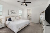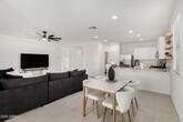 Take advantage of this fantastic rental opportunity! This desirable corner lot home welcomes you with a 2-car garage,tasteful stone accents for excellent curb appeal. Discover a captivating open layout with high ceilings,a soothing palette,blinds,and durable tile flooring. The gourmet kitchen boasts quartz counters,white shaker cabinets with crown moulding,recessed lighting,stainless steel appliances,a pantry,and a peninsula with a breakfast bar for casual dining. The primary suite showcases soft carpeting,an ensuite with double sinks,and a practical walk-in closet. Spend enchanting evenings in the lovely backyard,featuring a covered patio,stylish pavers,and pristine artificial turf for outdoor activities. This value will surely not disappoint!