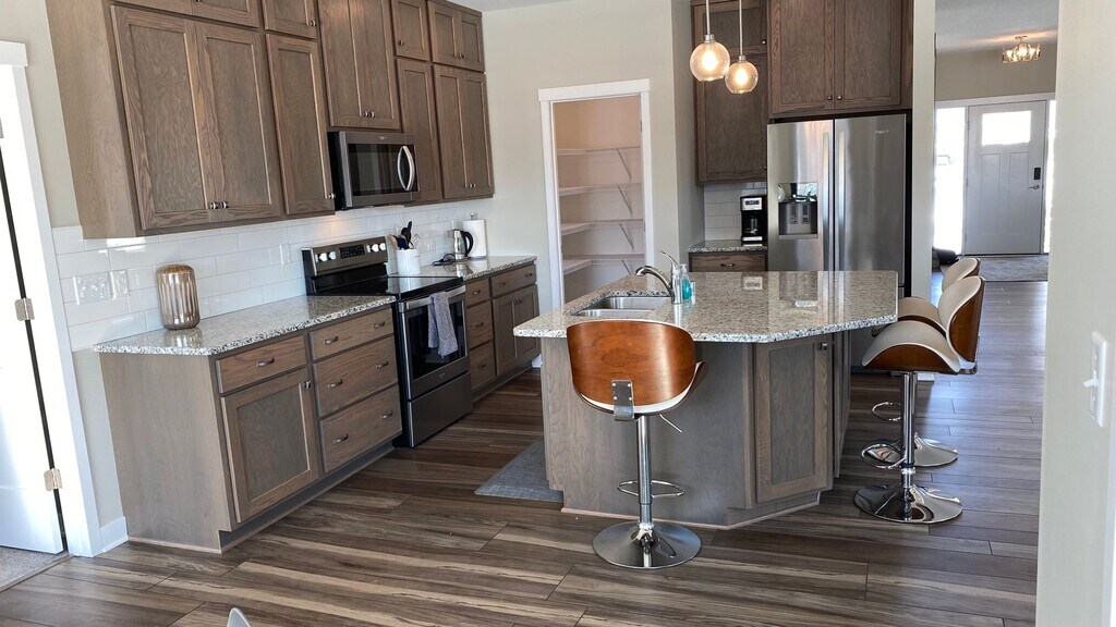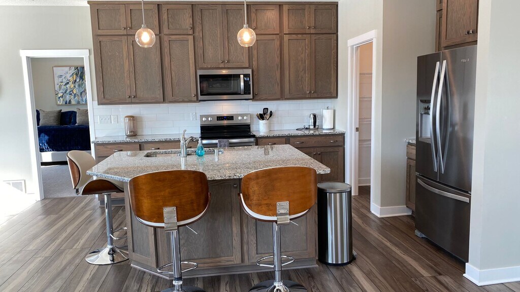 This spacious centrally located home is newly furnished and 5 miles away from Mayo Clinic, in SW Rochester. The kitchen is fully equipped for any length of stay. The main level features the master king-sized bedroom/bath, living room, dining room, washer/dryer, and an additional bedroom/bath. Relax in the upstairs living room with the gas fireplace or on the deck that is filled with natural sunlight. Downstairs features, 2beds/1 bath, office workspace, seating area, workout space, and living room. This house truly has it all! The prices listed are for a 1-year lease and do not include utilities or internet. If you are seeking a rental period ranging from 1 to 12 months and would prefer to have utilities, lawn care, and internet included in your payment, the home is available on Airbnb. Click the following link to check availability and reserve for 1-12 months.