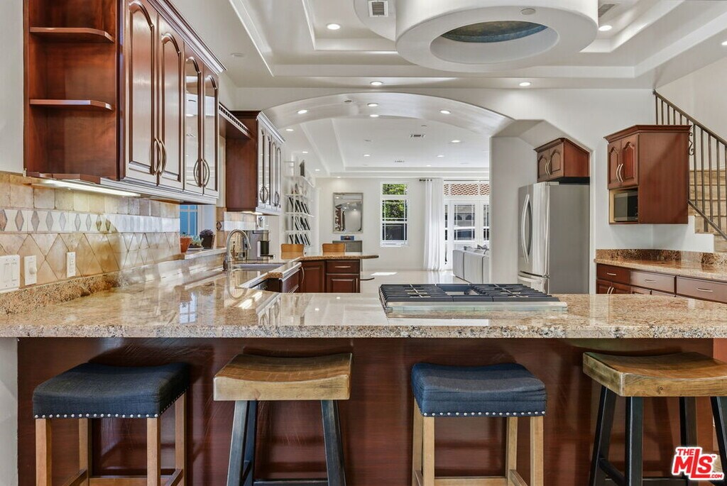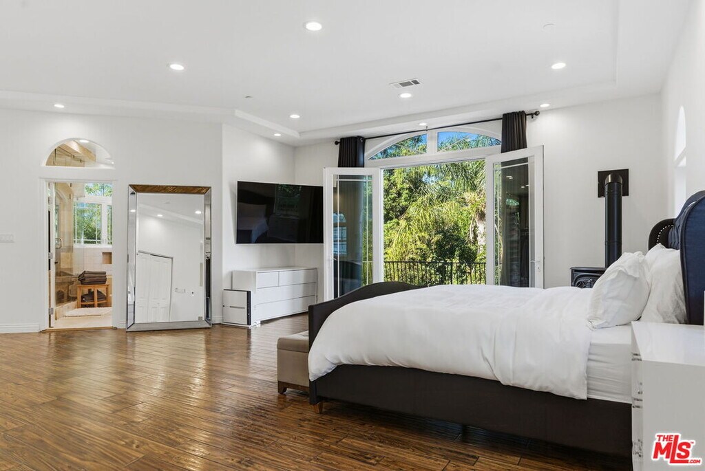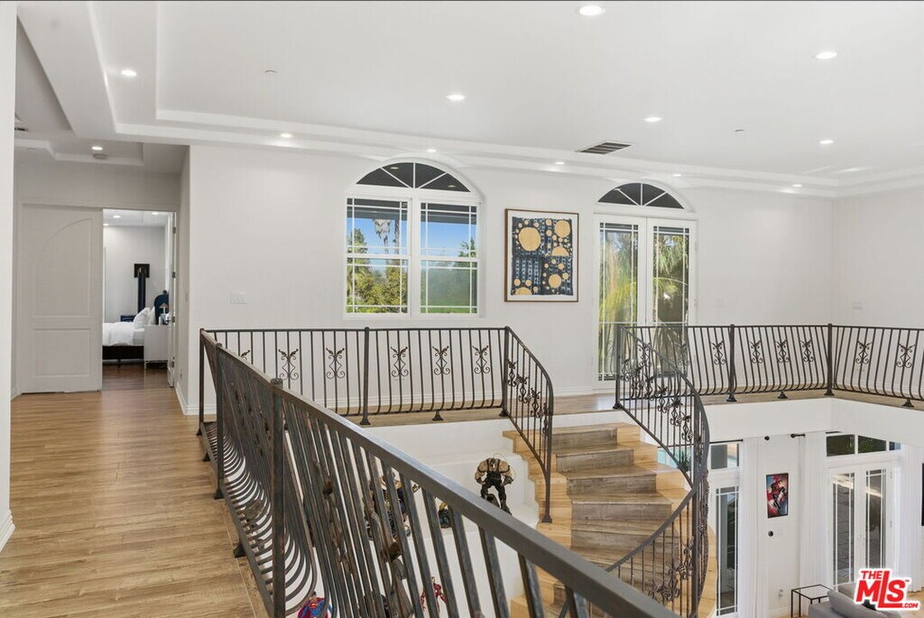 Private Living in the acclaimed Walnut Acres of Woodland Hills! This grand Spanish-inspired colonial estate is a dream home that brings the best of classical, and the sleek elegance of modern living. The residence spans over 6,200 square feet and sits on an approximately 39,800 square foot lot that includes a second parcel of land in the back providing room to build an additional structure in the backyard. Perquisites include a private double-gated entry with security cameras, intercom, indoor/outdoor speaker systems and optical cable. Enter this sophisticated high ceiling residence through a custom double walnut door that leads to a two-story-high entryway and living area graced by a stunning chandelier, hardwood floors, and intricate moldings. The awe-inspiring chef's kitchen is fully equipped and boasts beautiful granite countertops and Italian travertine backsplash. An intricately wrought iron stairway leads to a 360-degree second-story landing and a wraparound balcony where you will find the living quarters truly fit for royalty. The celestial primary suite features two walk-in closets, a custom fireplace and an impeccable ensuite bathroom with a walk-in steam shower and separate jacuzzi. Even more, double patio doors lead to just shy of an acre of resort-style living with a Mediterranean style pool, spa, private built-in BBQ/Bar and a verdant garden with mature foliage, fruit trees, and a long private driveway with two separate gates. MLS# 25617871