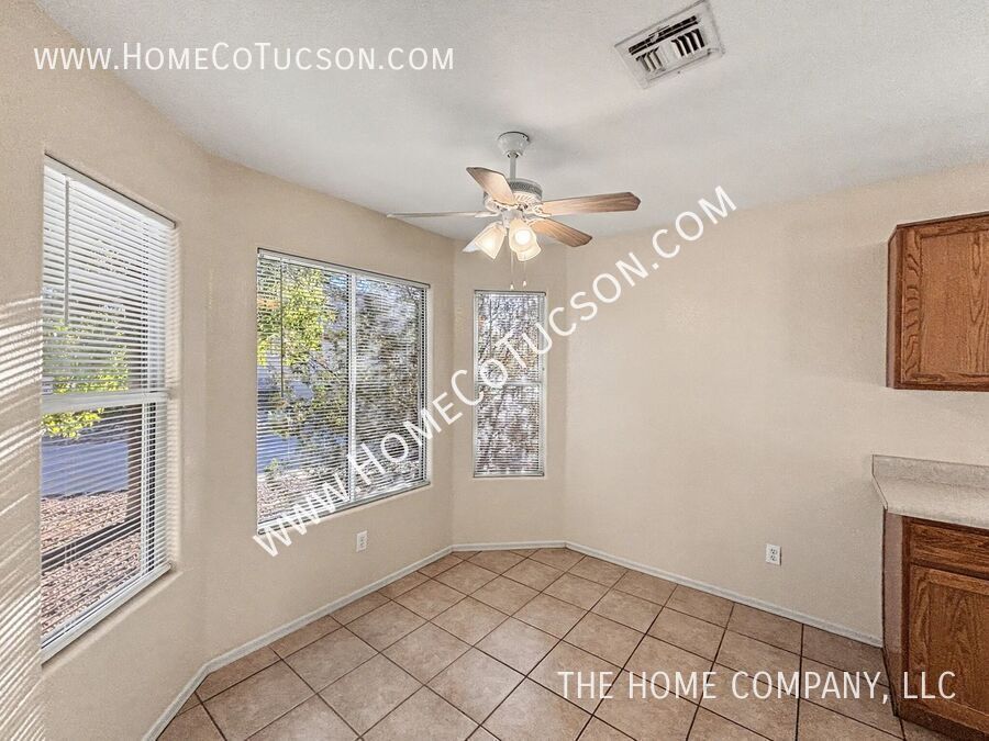 Tucked away on a cul-de-sac on Tucson’s west side near Silver Bell Golf Course, this single-story home offers three bedrooms, two bathrooms, and a two-car garage. The welcoming kitchen features a bright eat-in nook, while the spacious living area includes a decorative fireplace and room for a formal dining space. Newly installed vinyl plank flooring throughout most of the home adds a clean, modern feel. French doors from the living room open to a large walled backyard with a covered patio, perfect for everyday outdoor living. The primary suite includes double-door entry, a generous walk-in closet, and a beautifully updated bathroom with dual vanities and a custom-tiled walk-in shower. VIDEO TOUR: Explore this property with our comprehensive video tour to get a closer look at every detail before scheduling an in-person visit. **Walking Tour** **Virtual Tour** HOA: Silver Creek HOA Associa Arizona UTILITIES: Paid by the Tenant To review our rental qualifications, apply, view additional video tours, or schedule a showing, please visit: **Website: ** For questions during business hours, please contact us: Text: Email: QUALIFYING REQUIREMENTS: Email for a full disclosure of fees and to review a blank lease document. Experience the difference with The Home Company! Visit to schedule a showing, apply, view additional media for each available property, and review detailed qualifying requirements and information. Proudly setting the standard for property management in Arizona, The Home Company is dedicated to improving the rental experience for both tenants and landlords. As an Equal Opportunity Housing provider, we are committed to fairness and transparency in every interaction. All our agents are licensed Real Estate Professionals, delivering knowledgeable support and exceptional service. Please note, The Home Company, LLC exclusively represents the Landlord in all property-related matters. As the Landlord’s authorized Agent, our responsibility is to act in their best interests throughout the rental process. Call: (Leasing Department, Monday–Friday, 10 AM–4 PM) Covered Patio Custom Tile Shower Dual Vanity Hoa Large Yard No Carpet One Story Primary Bedroom With Ensuite Bathroom Southwest Gas 1 Tenant Responsible For Trash Service Tenant To Contact The Following Utilities To Establish Service: Three Bedrooms Tile Flooring Tucson Electric Power Tucson Water Two Bathrooms Two Car Garage Vinyl Flooring