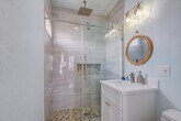 In a great LOCATION,just a 4 minute walk to the beach (2 Blocks from the seawall),tucked on a quiet street is this fully renovated home. This home is so close to the beach you can enjoy the sound of the waves while sitting on the front porch. All rooms are large and spacey. The kitchen is large and has tons of cabinet space. Large closets,custom built shoe storage,custom built kitchen & bathroom cabinets,Rainfall shower head,10Ft Ceilings. Under the home is 1600 sqft of storage space for tools,golf carts,lawn equipment,workshop,etc. Back yard is fully fenced. 2 driveways for plenty of off street parking. The home has been completely renovated - Kitchen,Quartz Countertops,Cabinets,Bathrooms,HVAC system,Roof,Water Heater,PEX Plumbing,Fence,etc. Beautiful,original hardwood floors. Washer/dryer,Refrigerator & Dishwasher are included. Home is located in X flood zone,no HOA. Pets are a case by case basis,approval required. Owner Agent. MLS# 76560671