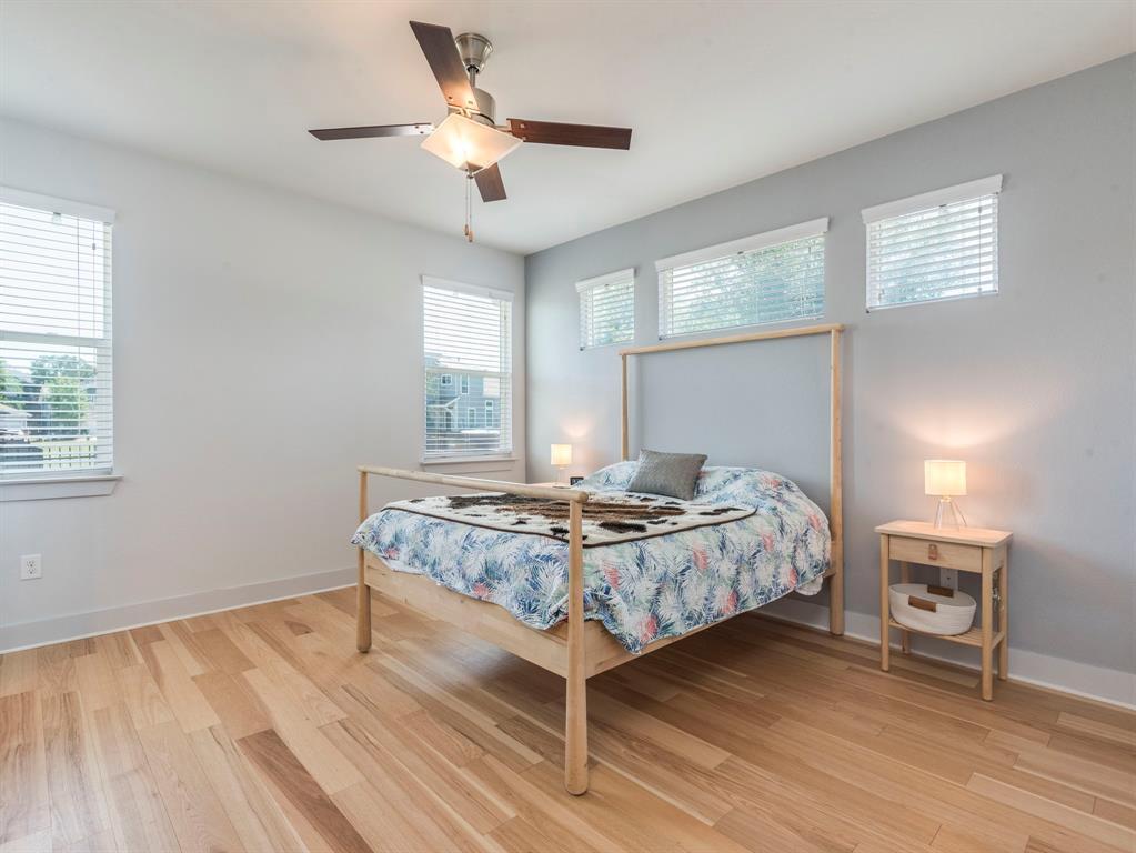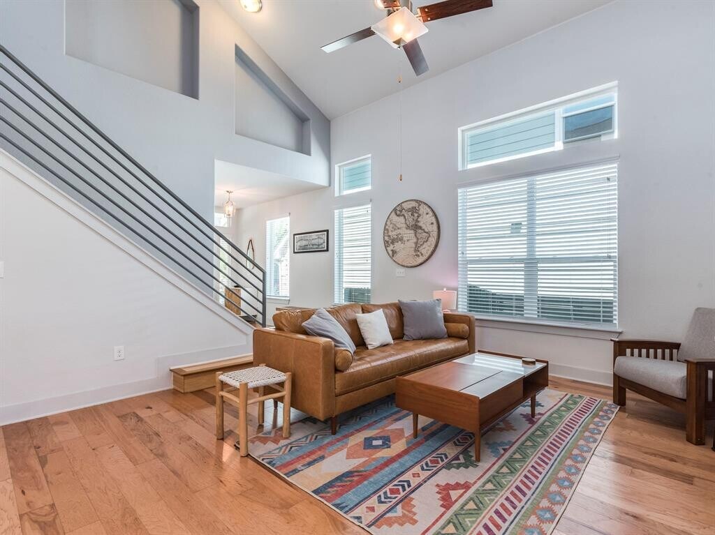 Welcome to your own private oasis located on one of the best lots in the neighborhood. This unique 3 bedroom 2.5 bath home boasts a primary suite on the main level, open game room on the second level, and natural light flowing throughout, providing ultimate comfort and convenience. Beautiful wood floors flow throughout the main floor and common areas of the second floor, creating a warm and inviting atmosphere. Each bedroom includes walk-in closets with custom shelving. The kitchen pantry is oversized with plenty of space for all your storage needs. Featuring vaulted ceilings, along with open concept kitchen and living space that provides views to the adjacent green space. This green space adds an extra layer of serenity to this already peaceful setting. With a spacious backyard, featuring a custom concrete patio, it’s the perfect space for outdoor entertaining or simply unwinding after a long day. Lawn care for the front and backyard are maintained by the neighborhood association. Don't miss a great opportunity to live in East Austin with access to some of the best hiking and trail areas, trendy restaurants and breweries, and close proximity to downtown and the Austin Airport. A short walk to the front of the neighborhood takes you to Ani’s Day & Night, a local coffee shop and bar with food trucks, live music, and a variety of events.