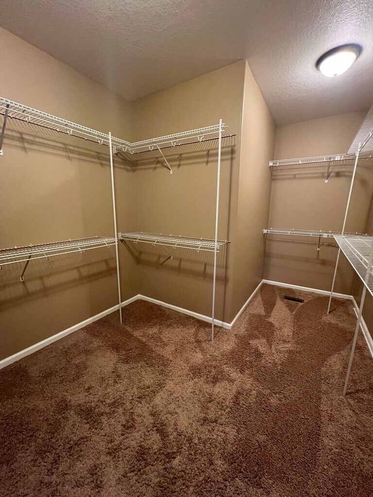 Discover the charm of this expansive 4-bedroom, 2.5-bathroom home nestled in the sought-after Fox Creek subdivision, just a short stroll from The Den at Fox Creek golf course. This home offers an open floor plan with seamless transitions between the living, dining, and kitchen areas—perfect for entertaining guests or enjoying family time. The spacious master suite is a true retreat, featuring a spa-inspired bathroom with a relaxing jacuzzi tub, double vanity, and a massive walk-in closet with abundant storage. Enjoy the warmth of two fireplaces—one in the main living area and another in the primary suite. The home's exterior is just as impressive, boasting an enormous back deck ideal for outdoor gatherings, grilling, or simply soaking in the peaceful surroundings. Additional highlights include a large kitchen with ample counter space, a bright and airy living room with large windows, and an oversized three-car garage with heater. This home combines elegance, comfort, and convenience, all in one fantastic location. Don't miss your chance to make it yours!