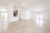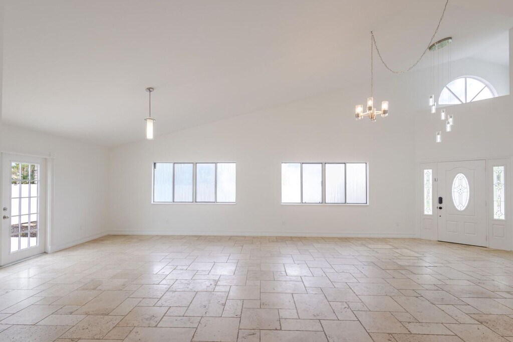 Courtesy of Compass Florida, LLC. Well-kept West Boca home featuring 3 bedrooms and 2 bathrooms on a fully fenced corner lot with a spacious backyard. Recent improvements include fresh neutral paint, smooth ceilings (no popcorn), and updated lighting fixtures throughout the home, garage, and exterior. Travertine marble flooring runs through the living areas, highlighted by vaulted ceilings and abundant natural light. The updated kitchen offers wood cabinetry, granite counters, and stainless steel appliances. The primary suite includes two walk-in closets and a remodeled bath with an oversized walk-in shower. Additional features include a front-load washer/dryer, upgraded garage lighting, and thoughtful improvements that create a bright, welcoming feel. This home is move-in ready, modernized, and turnkey.