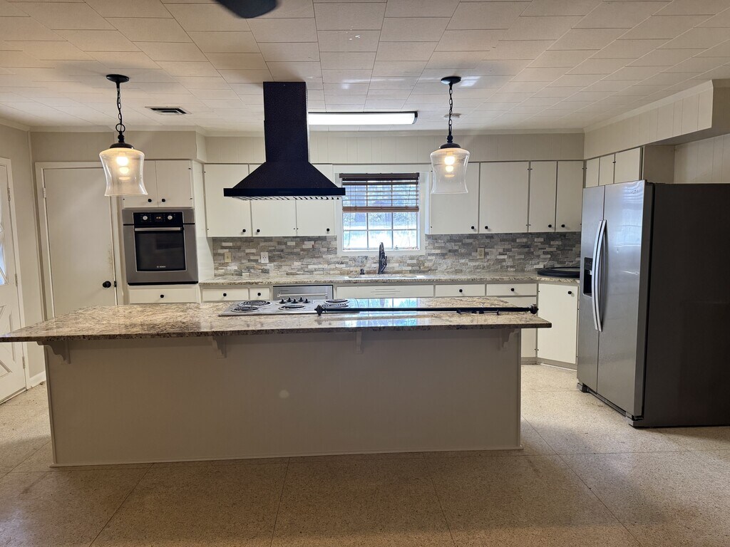 3 Bedroom 3 bath office sunroom outdoor kitchen with gas stove stove and refrigerator in house 2 acres fenced in with gated dive way 30x50 shop with covered area on the side 2-50 amp hook ups tenant pays for -electricity -water
