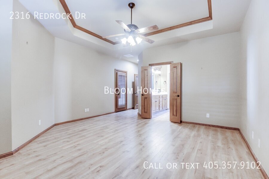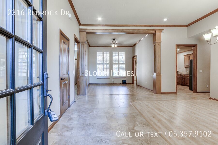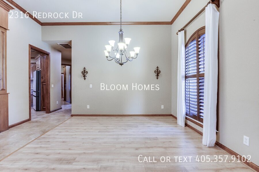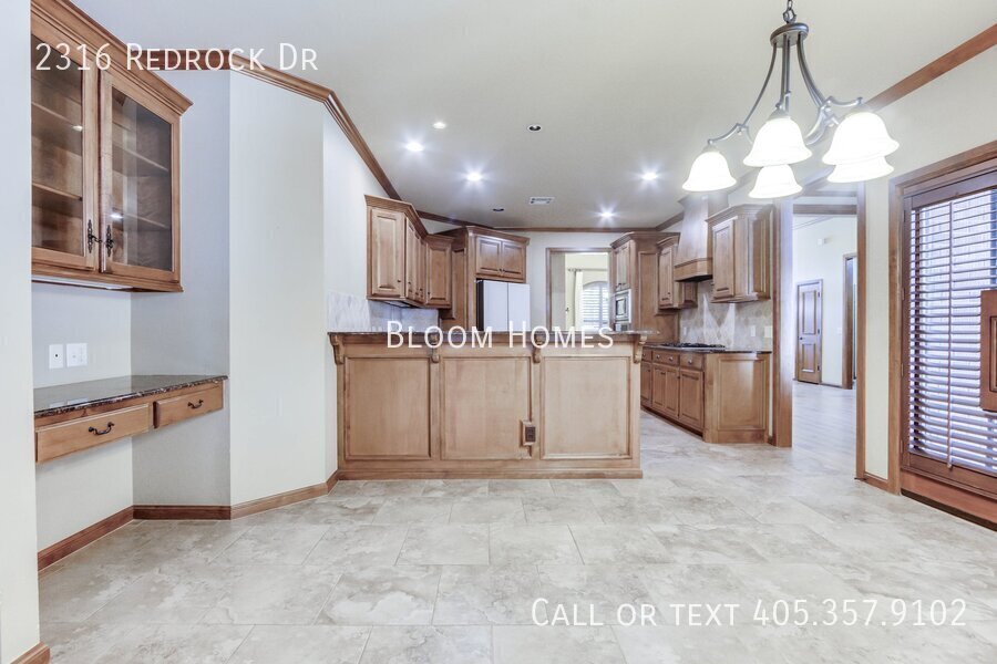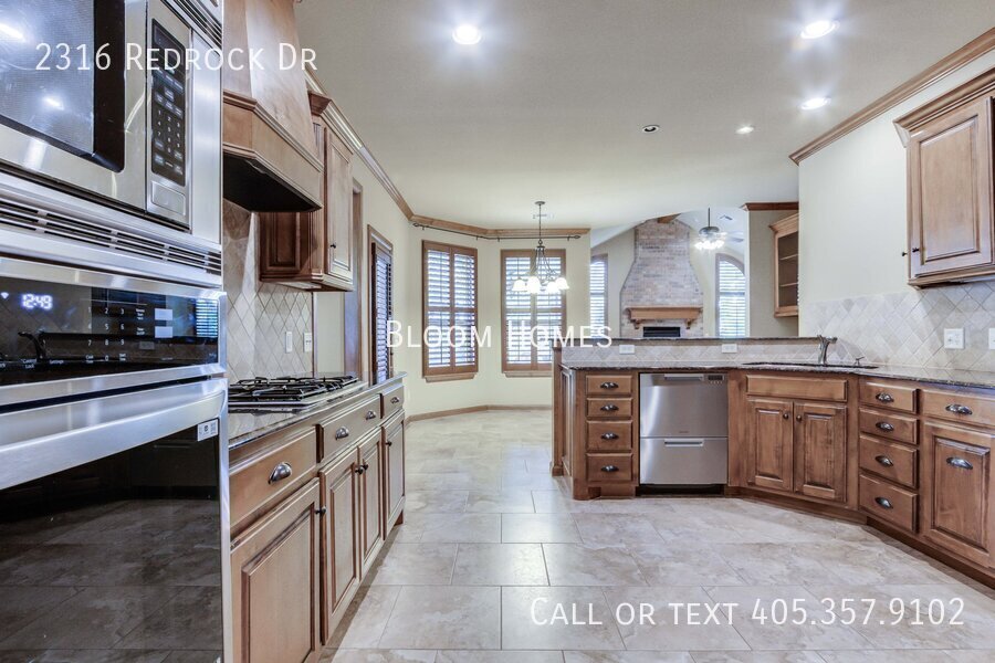 Welcome to 2316 Redrock Drive—an inviting blend of comfort, style, and everyday convenience in the sought-after Cheyenne Crossing community. From the moment you step inside, this home feels warm, cared for, and thoughtfully designed for real living. The layout flows beautifully, starting with spacious living areas that welcome natural light and give you room to relax, entertain, or simply enjoy quiet mornings with a cup of coffee. A cozy fireplace anchors the den, creating a perfect spot to gather on cool Oklahoma evenings. The kitchen will quickly become the heart of your home. Featuring granite countertops, abundant cabinetry, a gas cooktop, a built-in oven and microwave, and a state-of-the-art refrigerator, it’s fully equipped for both everyday meals and special gatherings. Whether you love to cook or simply enjoy a well-designed space, this kitchen delivers. Four generous bedrooms ensure everyone has their own retreat, including a comfortable primary suite with plenty of room and a well-appointed bath. Three full bathrooms make mornings easy, and the home’s 2,625 sq ft provides flexibility for guests, hobbies, or a dedicated workspace. Step outside into your private backyard oasis, fescue grass, a brand-new fence, and space to unwind or host friends. With Edmond’s beautiful seasons, you’ll love spending time out back. The front yard also features lush fescue landscaping, giving the home excellent curb appeal from the moment you arrive. Practical features elevate everyday life, including a Tesla charging station, a storm shelter in the garage, and a wireless sprinkler system that connects to the Rachio app. Located directly across from Cheyenne Elementary and within Edmond Public Schools, this home is surrounded by walking trails, the amenities of Mitch Park, and conveniences like Fresy by Reasor's just minutes away. With access to the neighborhood pool and a community known for its welcoming atmosphere, you’ll quickly feel right at home here. Come experience the charm, comfort, and convenience of Cheyenne Crossing, 2316 Redrock Drive is ready to welcome you. 12-month lease. Household income must be 3x monthly rent. Tenant responsible for lawn care and all utilities. No smoking. Pets require a $350 non-refundable pet deposit per pet.