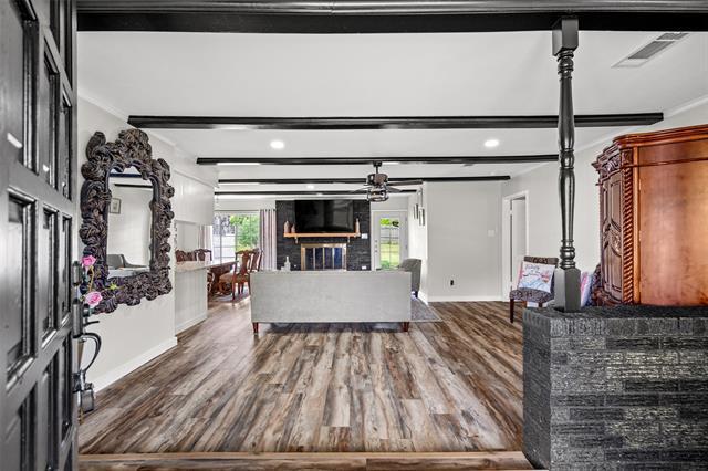 **FOR SALE OR LEASE** Mid Century charm meets modern amenities in this beautifully remodeled single story, 4 bedroom 2 full bathroom home in one of the quietest neighborhoods in Greenville. The open concept living room with exposed beams, a wood burning fireplace and tons of natural light exudes comfort and luxury. The galley kitchen offers tons of counter space, granite counter tops, stainless appliances and a large dining area with beautiful bay windows that overlook the large back yard. Tucked away off the kitchen is a full size laundry room with additional storage, pantry cabinets and coffee station. A bright hallway leads you to three spacious secondary bedrooms with large closets and a full guest bathroom. Nestled at the end of the hall is an impressive master suite complete with an ensuite bathroom and over sized walk in closet. The master bathroom features a stand alone soaker tub, walk in shower and double vanity. Step onto the covered back porch from the living room or a large sliding glass door in the master bedroom. Enjoy a tranquil yard with mature trees and plenty of space for a garden, swing set or even a pool! The attached 2 car garage is fully finished and complete with tons of storage cabinets. Located only 50 min to Downtown Dallas, 30 min to Rockwall, 10 min to L3 Harris, 5 min to Hunt Regional Medical Center and only minutes to shopping, dining, fast food, wineries and Downtown Greenville! Homeowner willing to lease furnished or unfurnished and lease term is negotiable. NO PETS. Renter's insurance required. Minimum 3x rent in monthly income. No evictions in the last 3 years. No felonies in the last 5 years.