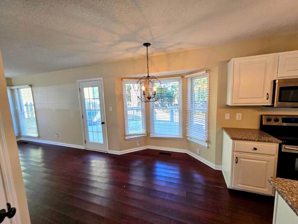 Beautifully updated home with a fenced yard and pet-friendly. Bright, spacious floor plan with three bedrooms and 2.5 baths. Engineered hardwood floors throughout, except the stairs. Soaring vaulted ceilings and a cozy wood-burning fireplace for those cold winter evenings. The kitchen features granite countertops, a large island, and lots of cabinet space. Upstairs, you will find the owner's suite with a spa-like retreat with a garden tub, walk-in shower, and generous closet space: two additional bedrooms and a full bath. You will enjoy the large deck and fenced backyard—minutes from 540 and only 10 minutes to North Hills. Discover comfortable living at 2317 Declaration Dr, Raleigh, NC, featuring a spacious 1,627 sq ft single-family home with three bedrooms and 2.5 bathrooms. This residence boasts modern conveniences, including air conditioning, ceiling fans, a fireplace, and hardwood flooring throughout. The kitchen is equipped with an island, pantry, dishwasher, microwave, dis...