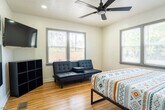 Feel at home in this charming 2-bedroom unit located just 20 minutes from Orlando International Airport. With a private entrance, this apartment offers a full kitchen, a comfy dining area, a trundle bed, and a private bath. Enjoy peaceful surroundings while being close to parks, shops, and dining. The apartment features a fully equipped kitchen, perfect for preparing your favorite meals, and a cozy living room with a daybed ideal for relaxing or hosting guests. The dining area provides a comfortable space to enjoy meals together. Laundry facilities are available for your convenience, and the shared fenced patio is perfect for enjoying the outdoors. Pets are warmly welcomed with a fee of $60 for each small dog. The apartment allows a maximum of 2 dogs per stay, and all dogs must be declared in advance. Parking is shared with other guests in designated areas. Conveniently located just minutes from Orlando's top attractions, restaurants, and entertainment venues, this apartment offers a peaceful retreat while keeping you close to everything. Explore the vibrant heart of Orlando, enjoy the lively nightlife, diverse dining experiences, and cultural events. The Orlando Regional Medical Center and SoDo District are just a short drive away, offering peace of mind and trendy shopping and dining options. The unit is part of a triplex, sharing walls and ceilings with neighboring units, but is well-insulated for your comfort. Quiet hours are from 8:00 p.m. to 8:00 a.m. to ensure a peaceful environment for everyone. Smoking inside the property is strictly prohibited and will result in an automatic complaint. Check-in is at 4:00 PM and check-out is at 10:00 AM. A security camera is installed outside near the entrance for everyone’s safety. Please do not unplug or tamper with it during your stay. The apartment includes a workspace with high-speed Wi-Fi, ensuring a seamless remote work-friendly environment. [SI]