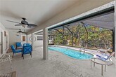 3-bedroom,2.5-bath pool home on an oversized corner lot in a prime Southwest location,across from waterfront homes. Features include a large covered patio,private natural fencing,and an updated interior with a new kitchen,granite countertops,new flooring,and impact windows and doors. The home offers a garage with a separate man-cave and private entrance,generator hookup,and newly paved driveways with a pergola. The primary bath includes a walk-in shower and soaking tub.