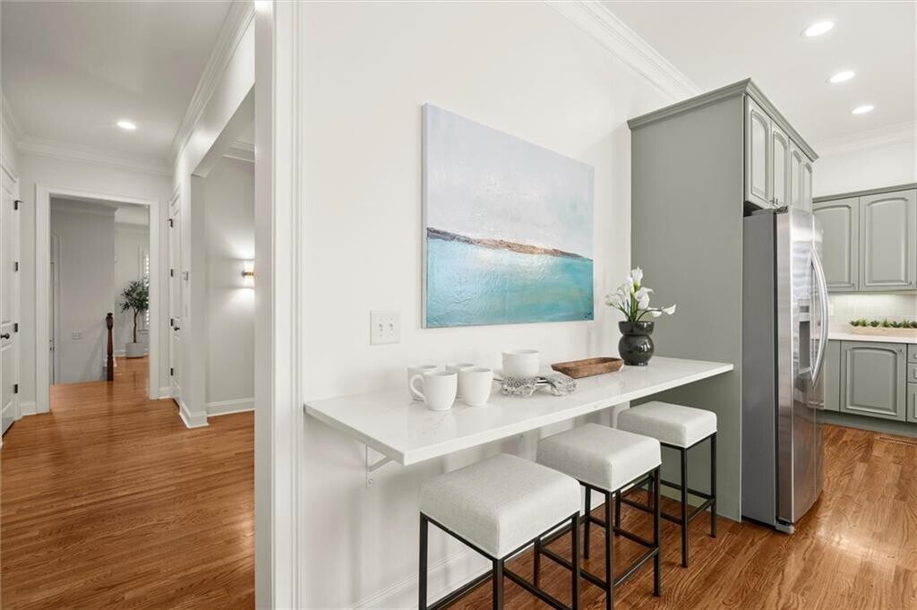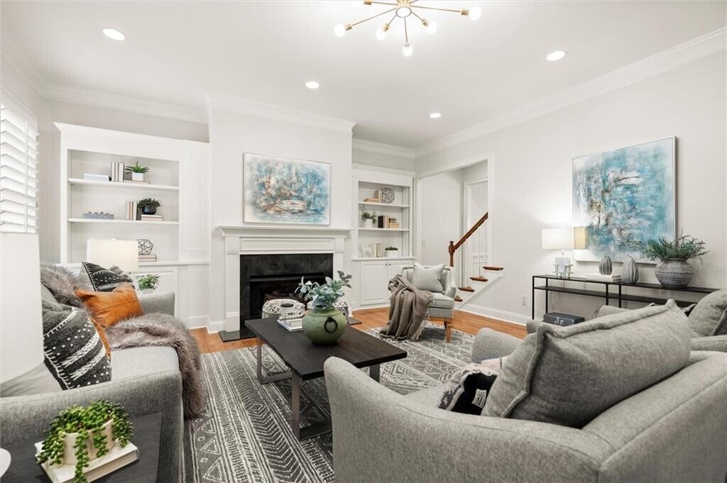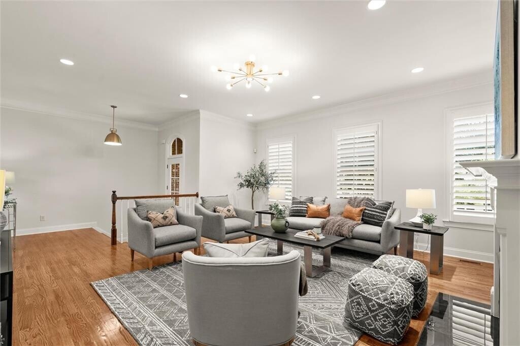 Experience an exceptional blend of luxury,tradition,and sophistication in this beautifully updated townhouse,freshly painted and enhanced with new lighting fixtures,elegant gold finishes,and stunning designer colored cabinets. Thoughtfully remodeled,including a stylish full bathroom on the terrace level,this home is designed for the discerning homeowner who appreciates both classic charm and modern upgrades. Featuring wide hallways and staircases and being elevator-ready,it offers both elegance and functionality with future accessibility in mind.The gourmet kitchen is a chef’s dream,showcasing a prep island,quartz countertops,stainless steel appliances,a spacious walk-in pantry,and abundant cabinetry. A versatile flex space nearby is currently set up as a home office and doggie room—perfect for remote work or your furry friends.The spacious,open family room provides an inviting gathering area,featuring a cozy gas log fireplace,custom built-in shelving,and wide plantation shutters,adding timeless charm throughout. The formal dining room is beautifully appointed,offering an elegant setting perfect for intimate dinners or festive celebrations with family and friends.The expansive primary suite is a luxurious retreat,featuring a tranquil sitting area and refined custom details. The spa-inspired en-suite bath includes double vanities,a soaking tub,a tile-enclosed shower,and a large walk-in closet. The terrace level is a versatile space currently set up as a bedroom suite with a TV area and remodeled full bath,making it perfect as a guest or in-law suite. It also lends itself well to other uses,such as a home office,gym,movie room,or teen retreat. Elegant touches such as rear stairs and custom built-ins on every level reflect thoughtful craftsmanship and timeless design. Step outside to the expanded deck,ideal for outdoor dining and relaxation. Situated in the sought-after Winterfield Court Marietta Country Club,this home is part of a golf cart-friendly neighborhood featuring a golf cart trail that runs from the community under Stilesboro Road,providing easy and convenient access to the golf course. Premier amenities include swimming,tennis,pickleball,and golf,complemented by an active lifestyle with planned social gatherings and events for adults and kids. Enjoy tranquil living just minutes from I-75,Kennesaw Mountain for walking,hiking,and biking,and top-tier schools like Mount Paran Christian School and Kennesaw State University. Also nearby is the vibrant Marietta Square,known for outdoor concerts,shows at The Strand,a Michelin-star rated restaurant,seasonal events and markets,diverse cuisine,locally owned restaurants and bars,Farmers Market,live entertainment,boutique shops,antique stores,museums,and lively festivals throughout the year. It is a thriving,culturally rich,and vibrant urban neighborhood where people want to live,gather,and experience city life. This is a rare opportunity to embrace upscale,low-maintenance living in one of the area’s most desirable communities—welcome to luxury living at Winterfield Court Marietta Country Club.