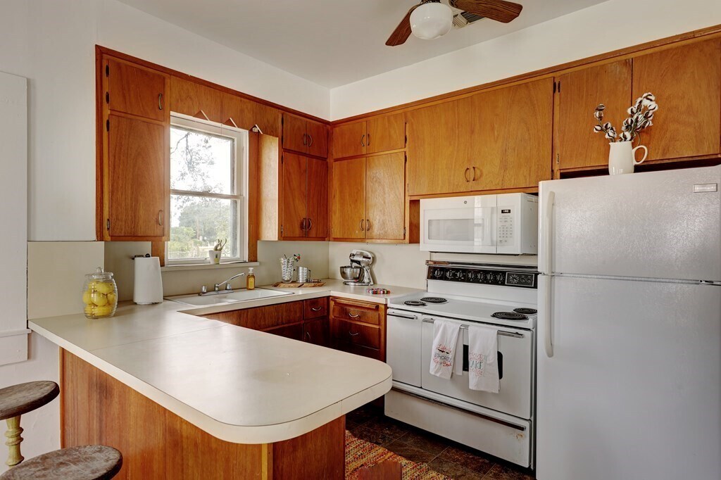 FOR LEASE – Charming 1920s 2-bedroom, 2-bath home with a flexible bonus room that can serve as a third bedroom, office, or additional living space, located in the heart of Harper. Situated on a spacious corner lot on Hwy 290, this property sits on nearly an acre, offering a large fenced yard with plenty of room to enjoy the outdoors. Inside the home features breakfast bar, central A/C, and large living room along with included appliances—washer, dryer, and refrigerator. Carpet has been recently updated since the listing photos were taken. Large windows throughout the home allow for abundant natural light. The property also includes a detached garage. Conveniently located near the Harper school with an easy drive to both Kerrville and Fredericksburg for shopping, dining, and medical services. No pets. No smoking or vaping.