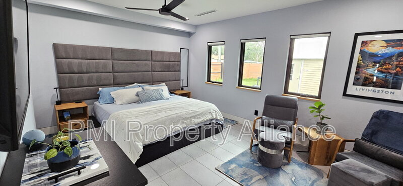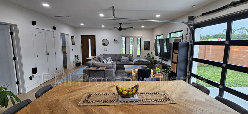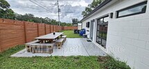 Welcome to this stunning custom-built gem, offering a perfect blend of modern design and comfortable living. This home features 2 bedrooms, 2 bathrooms, and a versatile bonus room that can be used as a home office, guest room, or additional living space—tailored to suit your lifestyle needs. The kitchen is a chef’s dream, featuring a stylish combination of white and natural wood cabinetry, sleek modern appliances, and a gas stove. With generous storage and counter space, it’s ideal for those who love to cook and entertain. Whether you're preparing a quick meal or hosting guests, this kitchen has everything you need. The open-concept great room provides a spacious and inviting environment where comfort and functionality meet. The layout allows for easy flow between the kitchen, dining, and living areas—perfect for spending quality time with family or relaxing after a long day. Luxury vinyl plank (LVP) flooring runs throughout the home, offering durability, style, and the added benefit of being carpet-free. The primary suite offers a peaceful retreat, complete with a large bedroom, a custom walk-in closet with built-in storage, and a spa-inspired en-suite bathroom. The bathroom features a modern soaking tub and a glass-enclosed shower, combining elegance and relaxation in one beautifully designed space. Step outside to enjoy the fully fenced backyard, ideal for outdoor gatherings, playtime, or simply enjoying Florida’s warm weather. The private yard offers both space and seclusion—making it perfect for entertaining or unwinding. Pets are welcome. Lawn care is the tenant’s responsibility. Water service will remain in the landlord’s name, with a flat $35/month charge to be paid by the tenant. Please note that the blue and tan sheds are off-limits, as is the adjacent property. Furniture in photos is not included. Don’t miss the opportunity to make this beautifully upgraded home yours—schedule a showing today!