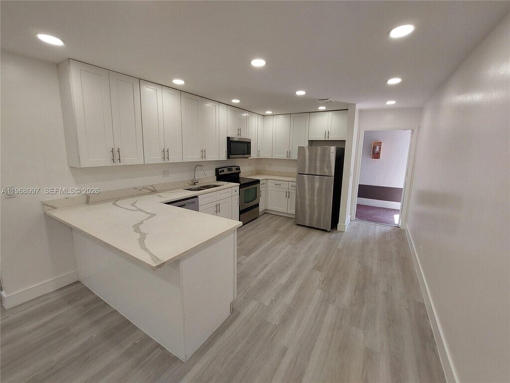 Completely reimagined from the inside out, this stunning 2-bedroom residence sits on an expansive 15,000 sq. ft. lot in the heart of Hollywood. Every inch of the apartment is brand new, thoughtfully redesigned to blend modern style with everyday comfort. Step into a bright, open-concept living space anchored by a massive chef-inspired kitchen featuring sleek stainless steel appliances, generous counter space, and a layout perfect for entertaining or unwinding at home. Contemporary tile flooring flows throughout, creating a clean, cohesive look with a warm, inviting feel. Enjoy the comfort of central A/C, abundant closet space, and the convenience of on-site parking. The bathroom, lighting, flooring, everything has been fully renovated with no detail overlooked. Even better, rent includes water, sewer, and garbage, only electric is separate. A beautifully updated home in a prime location. MLS # A11968997