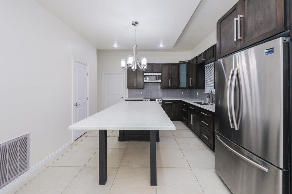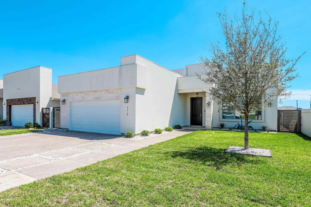 Contemporary 3-bedroom, 2.5-bath home in North Laredo. Property features include open floor plan, custom cabinetry, granite countertops, and porcelain tile floor throughout. Oversized fenced yard with patio, complete with outdoor island. Near schools, shopping centers, and restaurants.