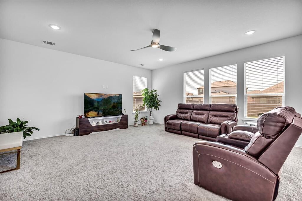This clean and bright home boasts a plentiful 3100 square feet for easy and spacious living. A fresh kitchen gives ample space for cooking and entertaining, which opens up to a spacious living and dining area. Enjoy the open floor plan, boasting with natural light while overlooking a spacious backyard. One bed/bath downstairs can act as primary, guest or office retreat. Upstairs, four more bedrooms allow for flexible space to meet any need. The home features plenty of storage spaces - between the oversized pantry, closets and garage storage. A covered back patio makes outdoor living cooler in the Texas summers! Close to the great amenities of Georgetown - various employers and hospitals.
