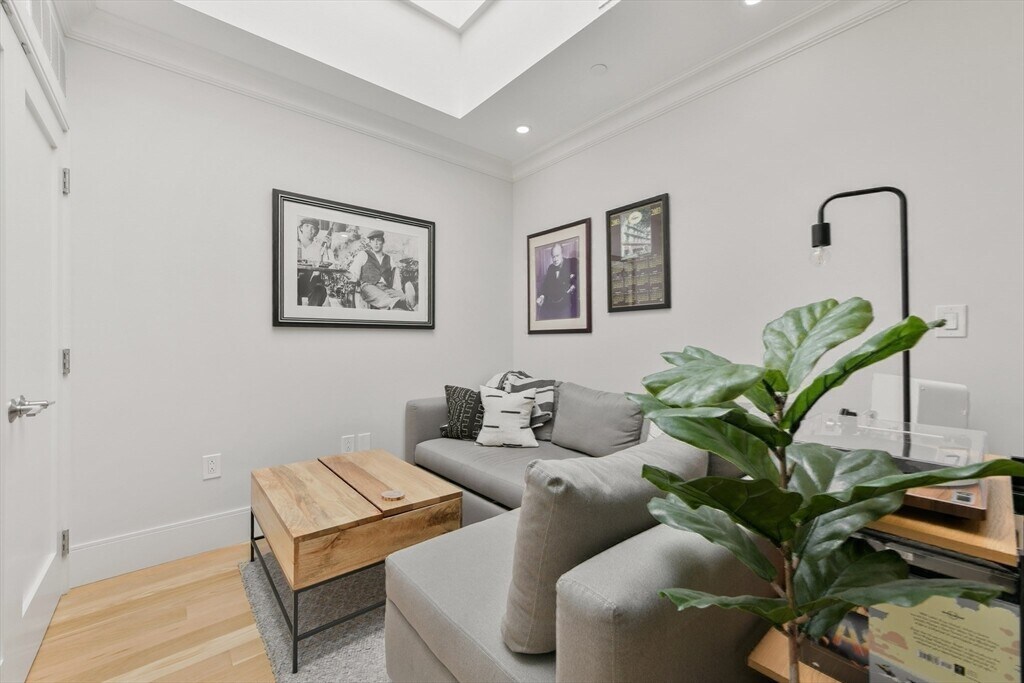Totally renovated Penthouse duplex in a Back Bay Brownstone. 1,500 SF includes 2 Bedrooms,Office and 2.5 Bathrooms,plus an oversized private roof deck. Fully updated kitchen with high-end stone finishes and premium SS appliances. Classic meets modern with high ceilings,custom closets,and an original fireplace mantel upgraded with modern gas. The office is exceptional,with an oversized skylight providing outstanding natural light. Central AC and in-unit laundry. 2023 condo-quality renovation on a coveted block—perfectly situated between Commonwealth Ave and Newbury Street. Restored and maintained are the moldings,grand foyer and elegant staircase -- Available 5/1. MLS# 73478115