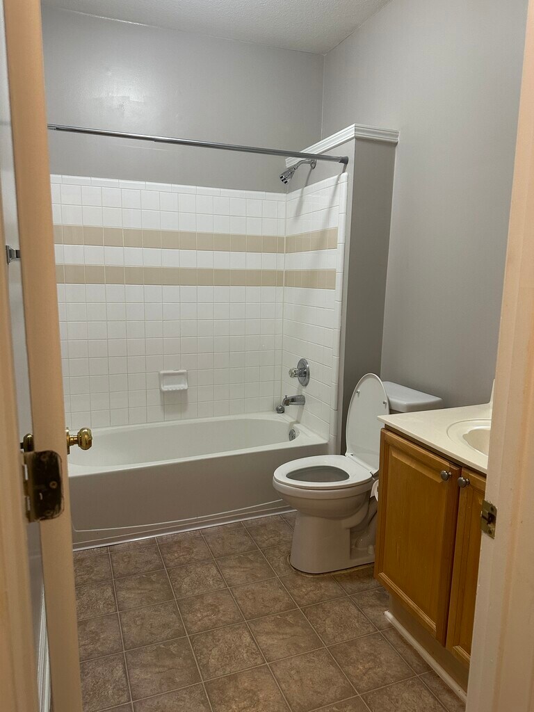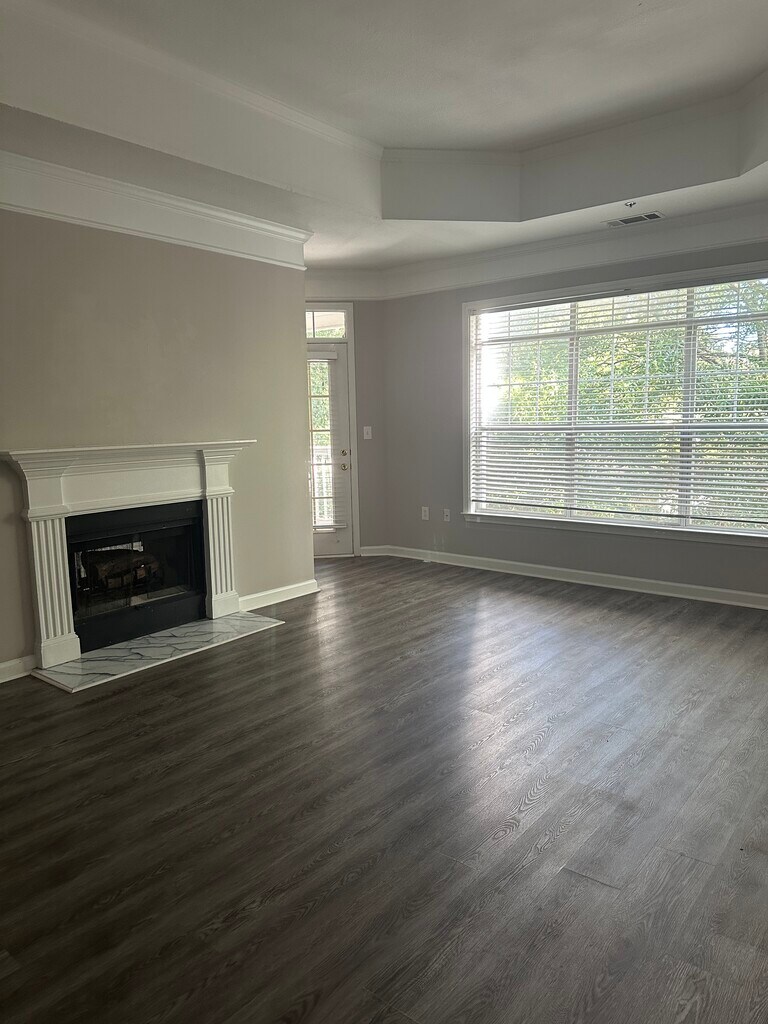Surprisingly large upper floor, 3-bedroom, 3 full bathroom condo in Gated community. A delightful two-way fireplace separates two large multi-functional rooms (could be your typical living/dining or living/office or whatever you like), one with built-in storage. A large shaded patio is accessible from both the living spaces and is suitable for multiple outdoor areas. The kitchen and laundry feature new appliances* and a clear view into the living space. Each bedroom has its own bathroom, making it ideal for any family or roommate configuration. The primary suite features two walk-in closets, a separate tub and shower, and a double vanity. The secondary bedroom features an updated shower and a walk-in closet. The third room features a standard tub/shower combination for those who require it. As for utilities, everything is electric, which means lower energy bills for you. Water and trash are included. A two-car garage with plenty of storage makes privacy and daily living a breeze. And, if you prefer public transportation, the bus is conveniently located right outside the gate. Target, Walmart, Aldi, and Kroger are all within walking distance. The community amenities are unmatched and include walking trails, pet amenities, a car wash, a swimming pool, a clubhouse with community rooms available for reservation, a gym, a full kitchen, and a billiards room, all included in the HOA fees. Pets under 25lb with a deposit and rent. No smoking inside. *Dishwasher, Washer, and Dryer