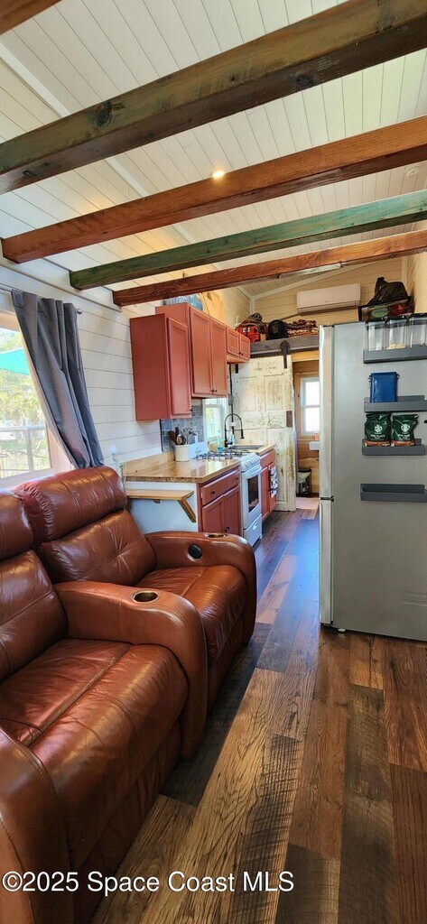 Unique home for rent. This is actually a TINY HOME located in the tiny home community of Peacewind. There is a 15x12 bedroom that has been attached to the original home that increases the sq. footage to 340 sq ft. There is a also a loft that can beused as a bedroom and another loft for storage. The spacious outside screened porch overlooks the gardens. This is the cutest house,ever.