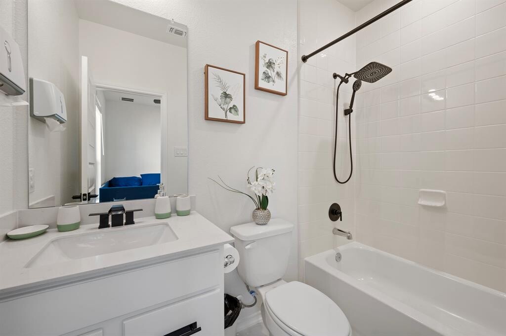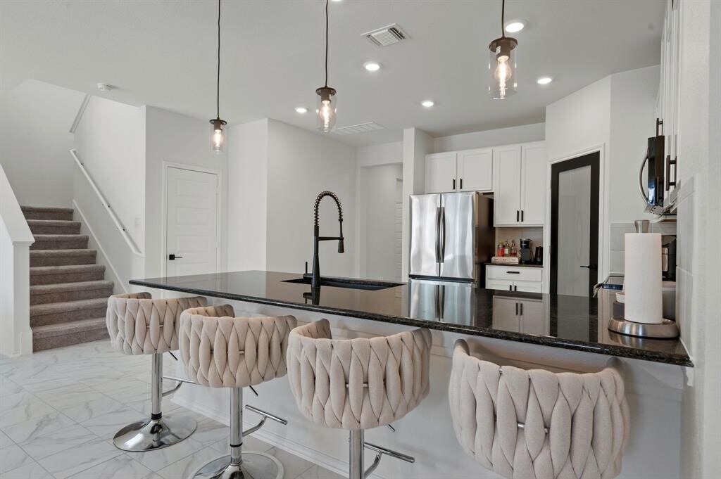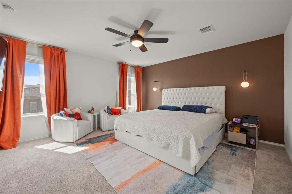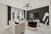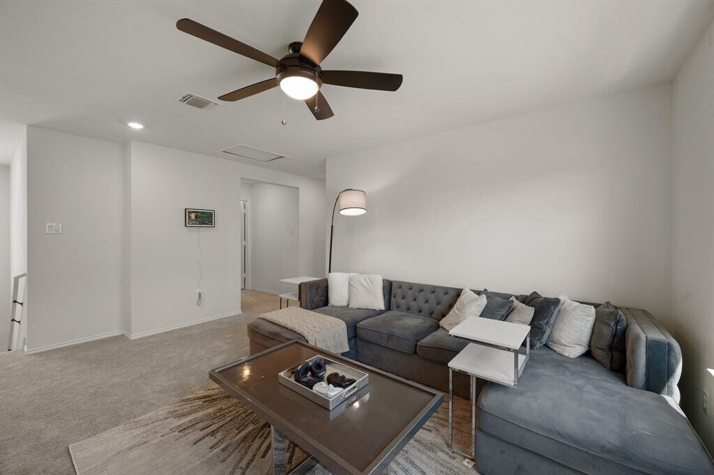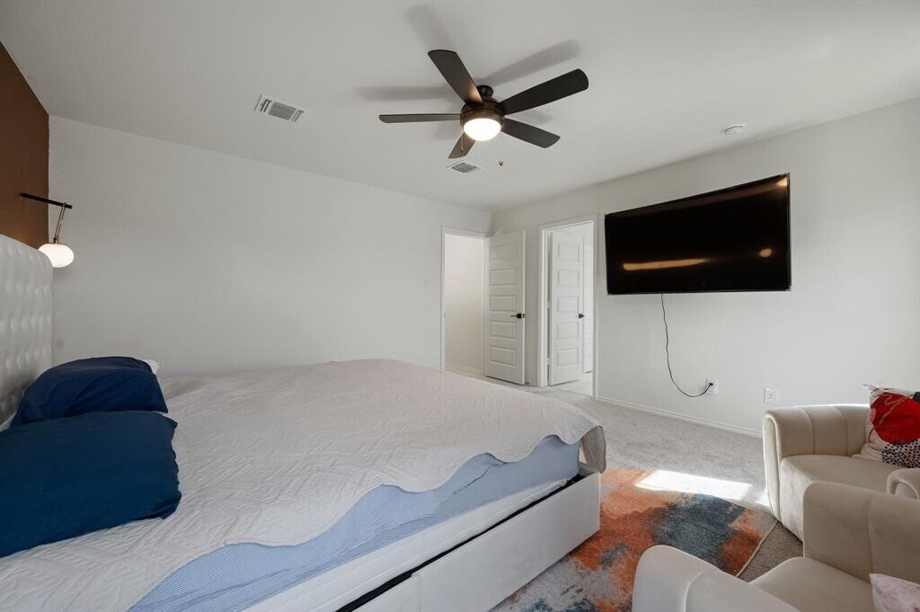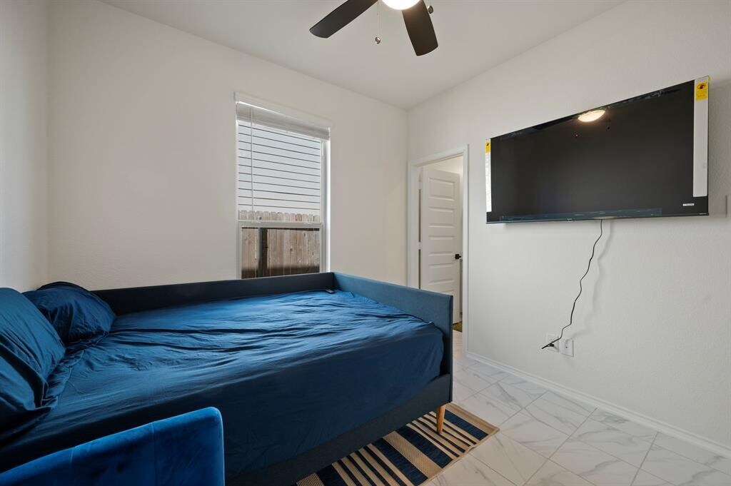 This beautifully designed two-story home offers 4 spacious bedrooms and 3.5 baths, blending comfort and modern style throughout. The main level features a private bedroom with a full bath, ideal for guests or multigenerational living, while the second floor offers three additional bedrooms and two full baths for family and friends. Soaring ceilings and expansive windows fill the open-concept living area with natural light, seamlessly connecting the living room, dining space, and kitchen. The chef-inspired kitchen includes sleek finishes, a breakfast bar, and a pantry, creating both function and style. Tile flooring on the main level ensures durability and easy maintenance, while upgraded lighting and plumbing fixtures add a touch of elegance. Upstairs, a versatile loft game room offers the perfect space for recreation or relaxation. The large laundry/utility room provides convenience and storage. Step outside to a sunny, level backyard with a covered, extended patio featuring a ceiling fan, designed for year-round enjoyment whether hosting friends or simply relaxing. A 2-car garage and water loop installation complete this home’s thoughtful features. Nestled in a quiet, welcoming neighborhood with easy access to shopping, dining, and entertainment, this move-in-ready property offers the perfect balance of modern design, functionality, and everyday comfort.
