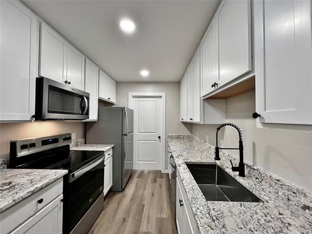MOVE-IN SPECIAL! $325.00 OFF YOUR 2ND FULL MONTH'S RENT! Recently updated 2-1 duplex in Burleson ready for immediate occupancy! Lovely covered front porch out front and a great fenced yard out back. Neutral color scheme, granite countertops, luxury plank flooring, updated fixtures throughout and more. Front entry leads to the light & bright living area which flows seamlessly into the breakfast area and kitchen. Galley style kitchen comes complete with a built-in microwave, dishwasher, disposal, stove, and refrigerator. Nice sized bedrooms, with ceiling fans and a walk-in closet in the primary suite and one guest bedroom. Full size washer & dryer are included for your convenience. Lawn maintenance and pest control included. Just blocks from elementary school and multiple dining options. Owner must approve all pets.