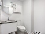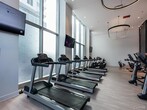 Fully furnished and beautiful new Studio of the EstWest project with orientation towards West. Building offering luxurious and modern amenities: 2 pool (1 indoor & 1 rooftop), exercise room and billiards, rooftop lounge ... Close to everything: Atwater metro station, Place Alexis Nihon, Dawson and LaSalle College, Concordia University and more. A real turn-key home and a must see! Included in this unit: Fully furnished: Queen sized bed with mattress, desk with chair, computer desk, curtains, clothes rack, etc. Appliances: Air conditioning, Washer/Dryer in Unit, Dishwasher, Refrigerator, Stove, Microwave, Locker Utilities: Hot water, Building features: Elevator, Indoor pool, Security, Concierge, Communal outdoor space, Gym, Rec room/Lounge Only 2 minutes walk from Atwater Metro Station. This 350 square foot unit is furnished. Pets are not allowed. Tenant insurance is required. Send us an inquiry for more information or to schedule a visit!