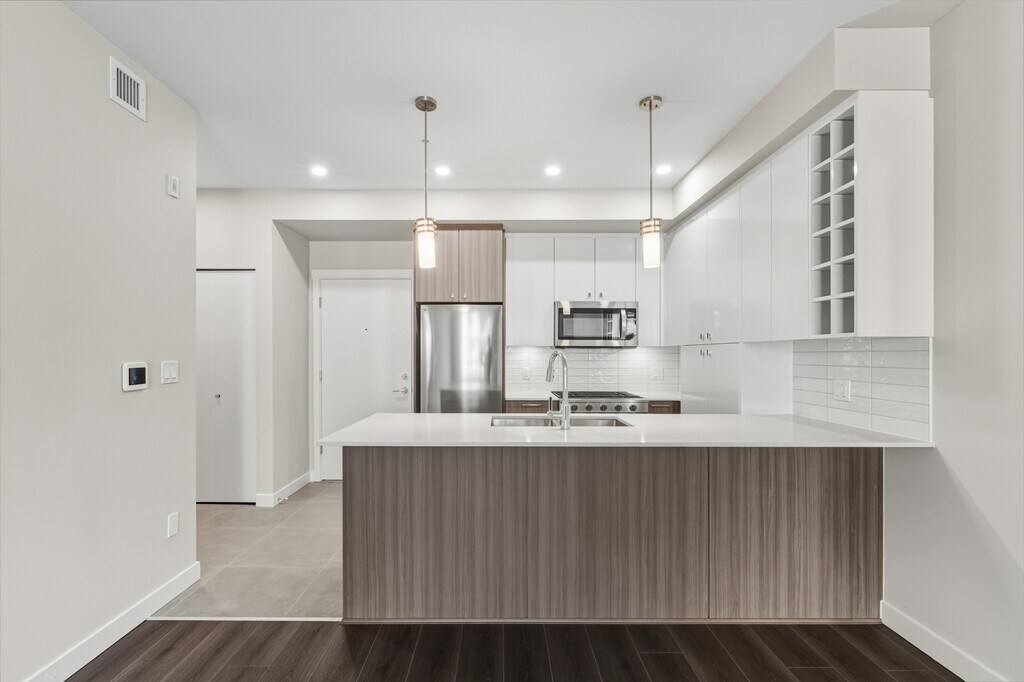Welcome to Hamilton Village, a brand-new, never-lived-in home located in Richmond on the border of New Westminster, in the geographic heart of the Lower Mainland. This 2-bedroom, 2-bathroom condo offers an exceptionally 785 sq ft. functional floor plan with a large 119 sq ft balcony. Beautiful modern finishes throughout, including quartz countertops and stainless steel appliances. The kitchen is thoughtfully designed with a built-in mini pantry, while the home also features geothermal heating and air conditioning, a gas range, and a gas hookup on the balcony. Enjoy peaceful courtyard views and a versatile second bedroom ideal for a home office or guest space. The home offers one storage locker and two parking spots. This home includes a built-in EV charger, ready for immediate use. Located in the first phase of the Hamilton master-planned community, the building is just a short walk to Hamilton Community Centre and Hamilton park. Commuting is convenient, with a quick bus ride to 22nd Street SkyTrain Station and easy on ramp to Westminster Hwy/91. Commercial services are located directly below, including a health centre, dentist, pharmacy, insurance office, optometrist, salon, and pizza shop, with additional retail coming in the next phase across the street later this year. School catchments include Hamilton Elementary and McNair Secondary. One Year Lease. Screening Required. Utilities Separate. Pet Friendly. Property Listed by Four Seasons Property Management Ltd