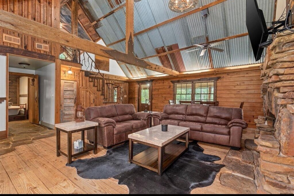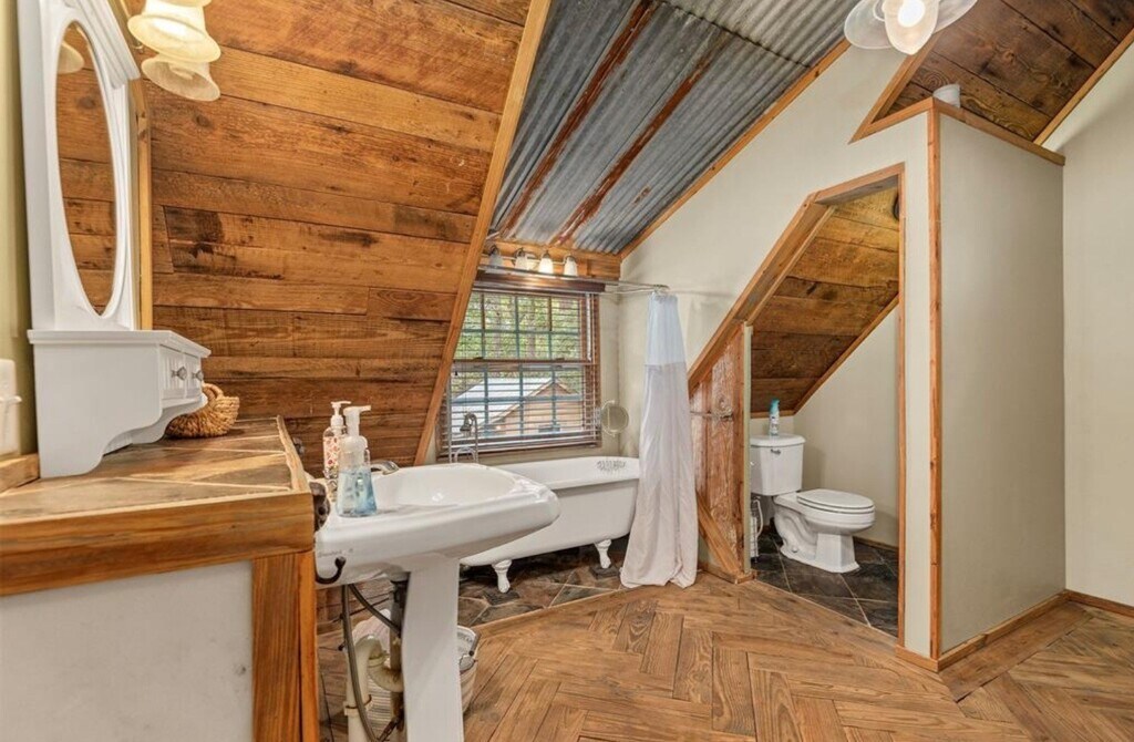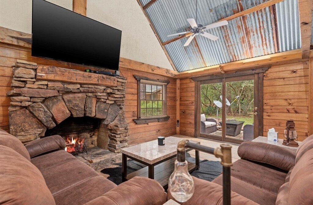 Peaceful log 2 Bedroom/ 2 Bathroom Log Cabin retreat on 1 ace of unrestricted land. This unique home features a Full Size Pickleball Court,Cedar beams and a cozy wood-burning fireplace. Front Driveway is Shared with the Owner*Back Driveway can be also be Used*Kitchen offers a farmhouse sink and custom tin ceiling,with a dining area ideal for gatherings. First floor includes One bedroom and a Full bathroom with a Classic clawfoot tub. Upstairs Primary suite Bathroom features a pedestal sink and clawfoot bathtub. Enjoy a spacious back patio and yard,perfect for year-round entertaining. Property includes a matching 200 Square Foot (Per Owner) Tiny house with A/C,ideal for an office or flex space. Convenient access to FM 2920,Grand Parkway,and TX-249. Zoned to Tomball ISD. Includes Free Water Service (via the Septic Well System) Must See ! MLS# 7933036