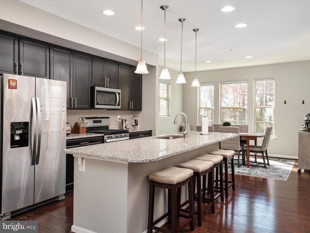 Move-in ready and filled with natural light, this beautiful end-unit town home combines modern design with everyday comfort. The open main level features a bright, spacious kitchen with granite counter tops, stainless steel appliances, and a large island that’s perfect for cooking, entertaining, or gathering. Upstairs, you’ll find three generously sized bedrooms and a private primary suite designed for comfort and convenience complete with a massive walk-in closet and en-suite bathroom showcasing a walk-in shower and soaking tub. The finished lower level offers flexible space ideal for a home office, guest suite, or media room. With an attached two car garage, abundant sunlight from extra windows, and a location close to major commuter routes, shopping, and dining, this home offers the perfect balance of style, function, and accessibility.