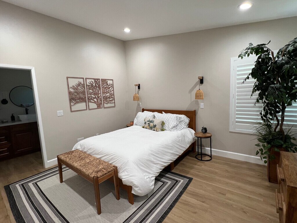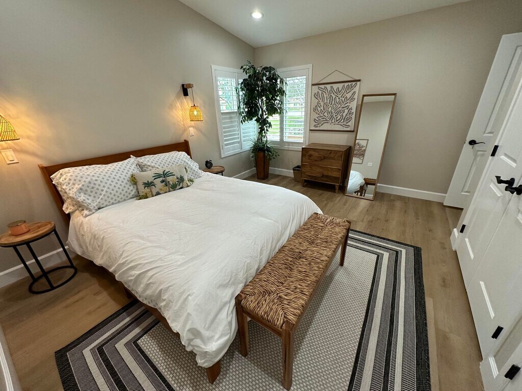 You are going to enjoy this completely remodeled Monterey model. This home has been totally remodeled and upgraded throughout and feels like a brand new home. The new design separates the two bedrooms and gives each side of the house a feeling of it's own personal area. The home has great light throughout including a solar tube. The outdoor space is peaceful and inviting. The home is truly unique and gives you all the modern amenities you want but is still located in the wonderful senior community of Leisure Village. With its great location in the center of the community you have great views of the hills and you are in walking distance to the pool, spa, fitness center, golf course and much more at the recreational center. This home is managed by Barlow Property Management Short term lease - 90 days - may be renewed All utilities are included No smoking No Pets All residents must be 55+ Tenant to agree to carry renters insurance
