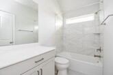 Step into modern elegance in this beautifully designed 3-bedroom,2.5-bath home. From the moment you enter,you’ll be captivated by the stunning gray herringbone flooring that flows seamlessly throughout the main living areas,setting the tone for a clean and contemporary aesthetic. The heart of the home is the stylish kitchen,featuring sleek silver finishes,eye-catching pendant lighting,and a layout perfect for both everyday living and entertaining. The open-concept design creates a bright and inviting space that effortlessly connects the kitchen,dining,and living areas. Retreat to the spacious primary suite,where luxury meets comfort. The spa-inspired bathroom boasts a soaking tub,separate shower,and beautiful marble-style tile,offering the perfect place to unwind after a long day. Located in Jordan Ranch,residents enjoy access to top-tier amenities,scenic surroundings,and a all just a short drive from Katy’s shopping,dining,and major highways. MLS# 3674604